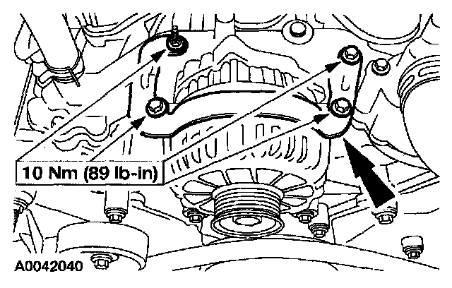 2. Relieve the accessory drive belt tension and remove the belt from the generator pulley. Leave the belt in place for reinstallation.