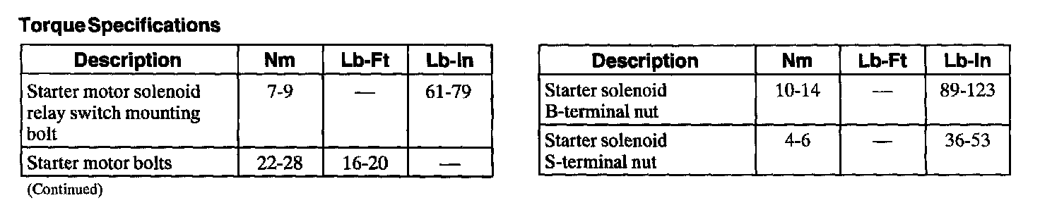 Starting System: Specifications