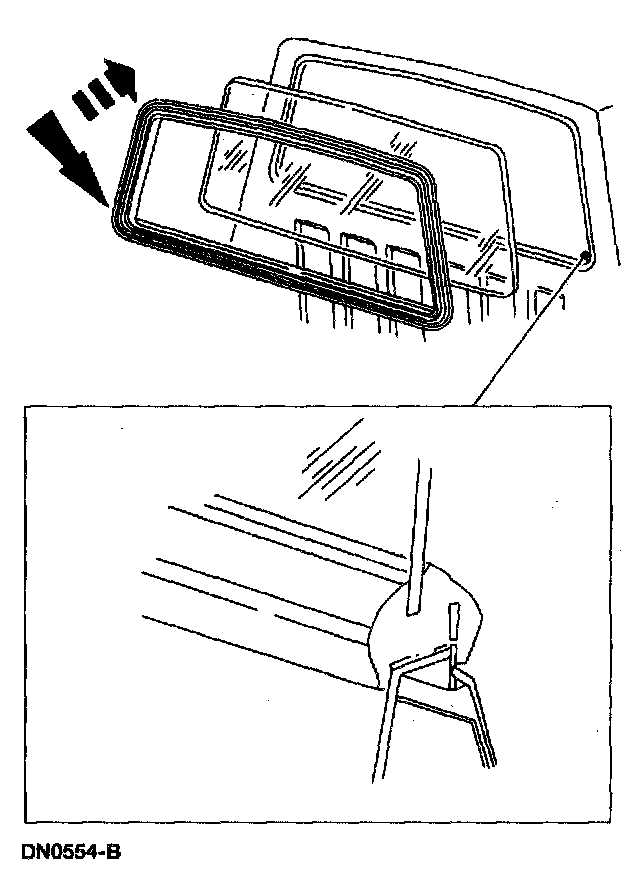 NOTE: Removal of the back window glass requires an assistant to hold the back glass window as it is pushed out.