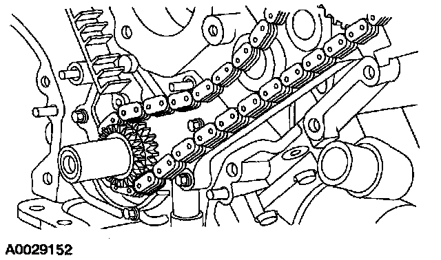 - Install the RH (outer) timing chain on the crankshaft sprocket.