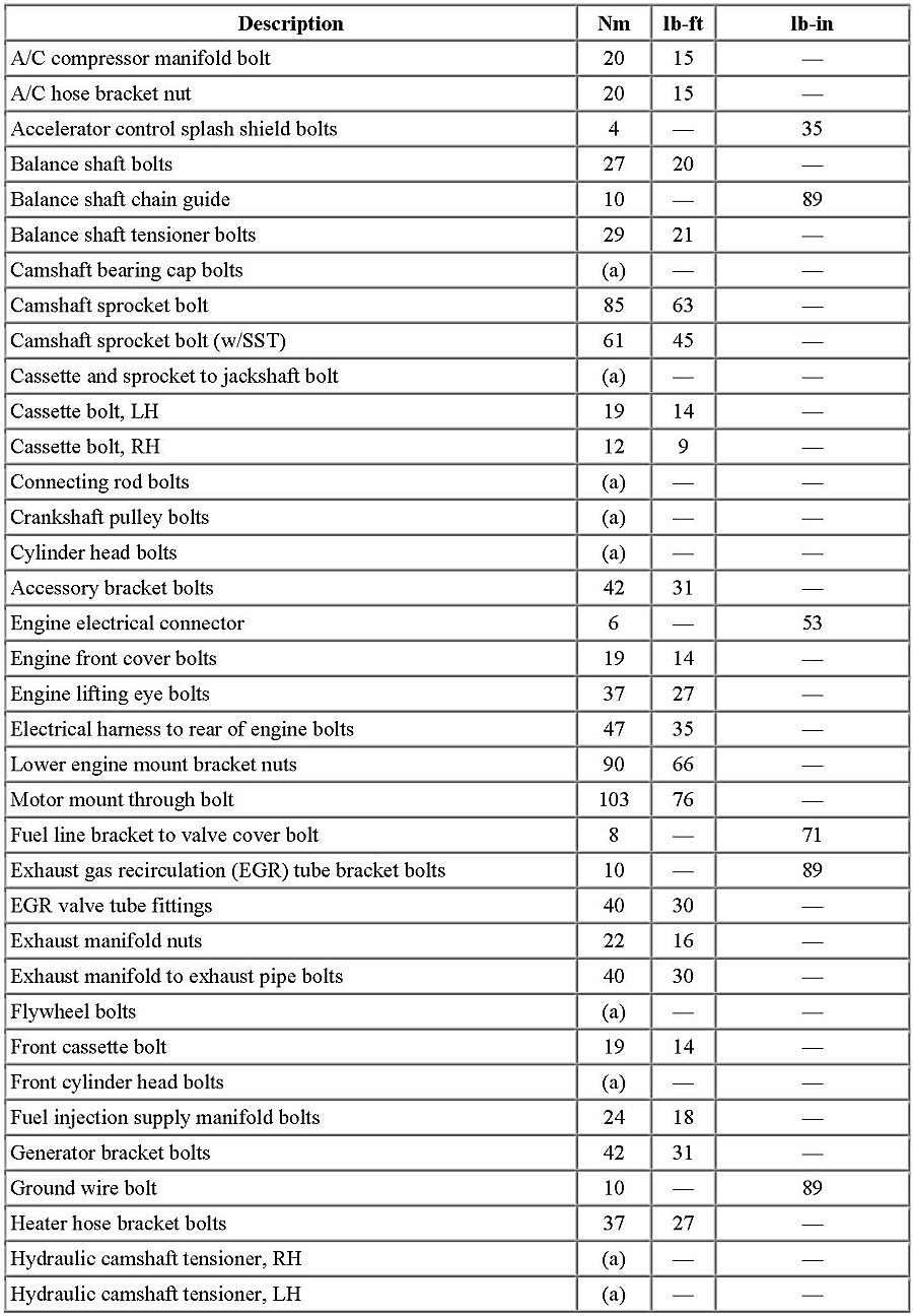 For camshaft bearing tightening sequence refer to procedure Service and Repair