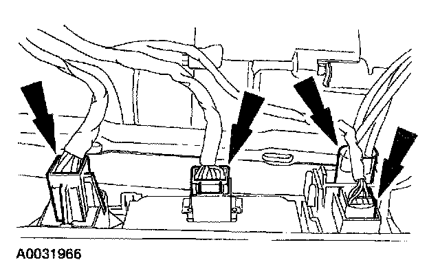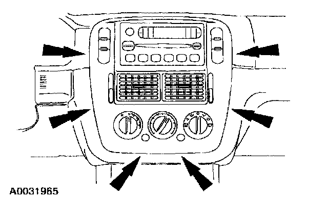 REMOVAL1. Carefully pry and disengage the center instrument panel finish panel retaining clips.
