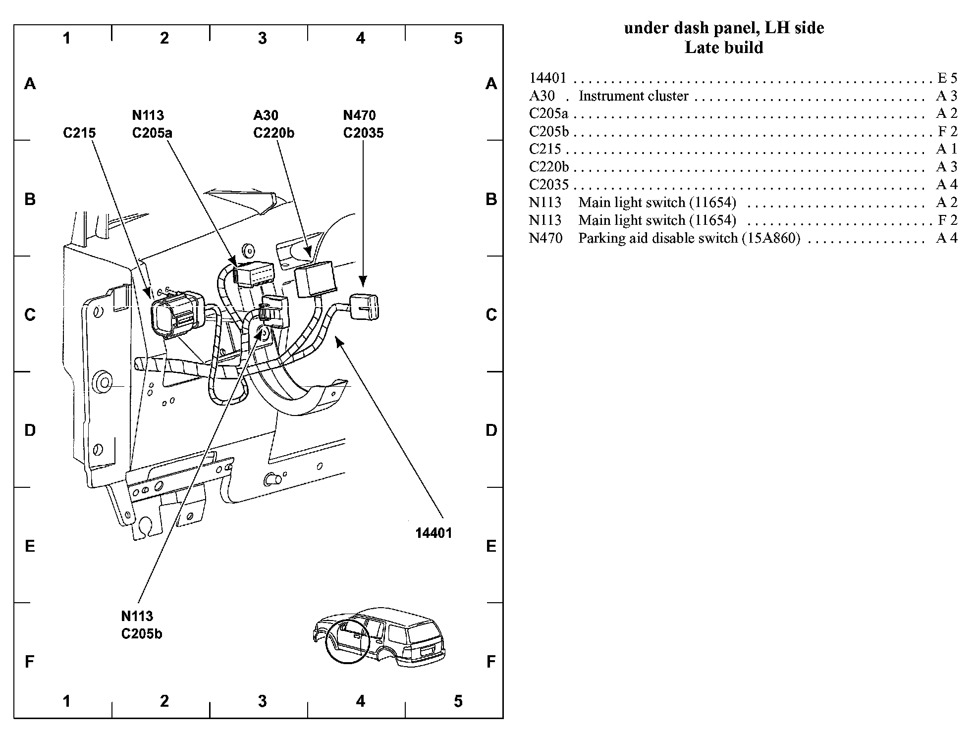 View 151-43 (Under Dash Panel, LH Side Late Build):