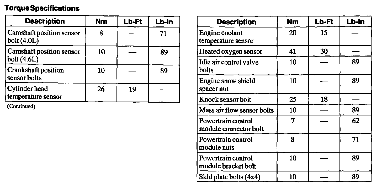 Torque Specifications: