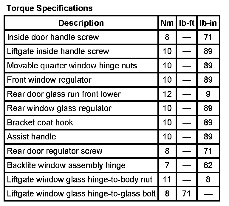 Torque Specifications: