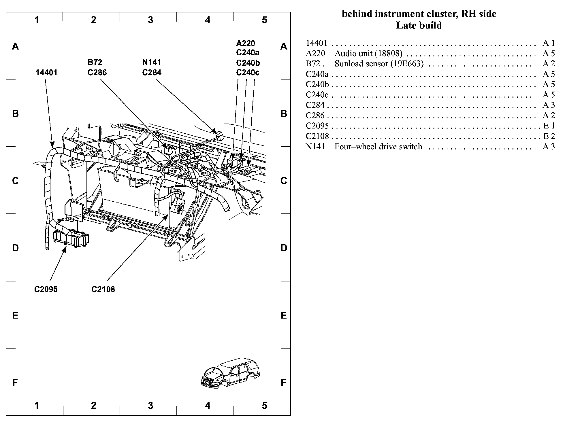 View 151-47 (Behind Instrument Cluster, RH Side Late Build):
