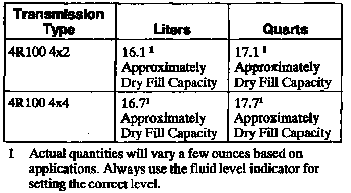 1 Actual quantities will vary a few ounces based on applications. always use the fluid level indicator for setting the correct level.