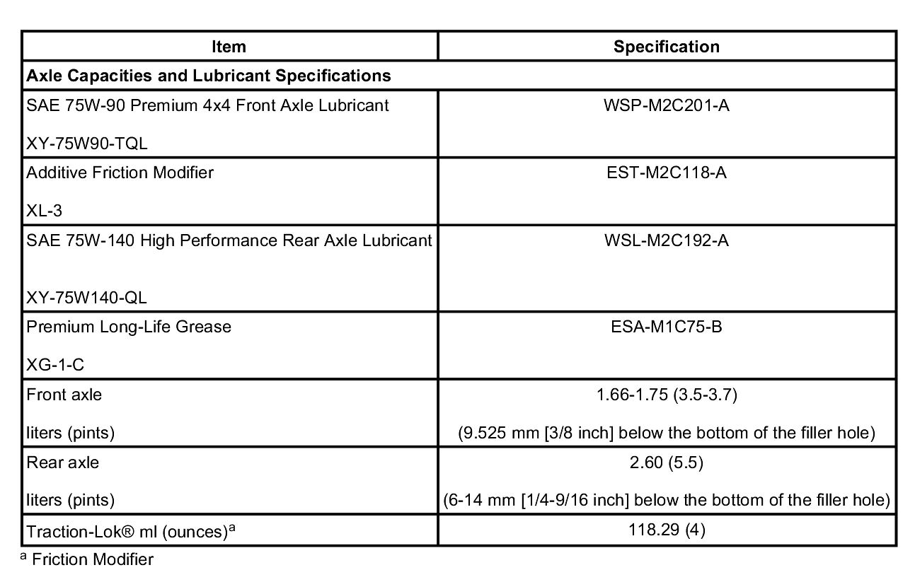 Axle Capacities And Lubricant Specifications: