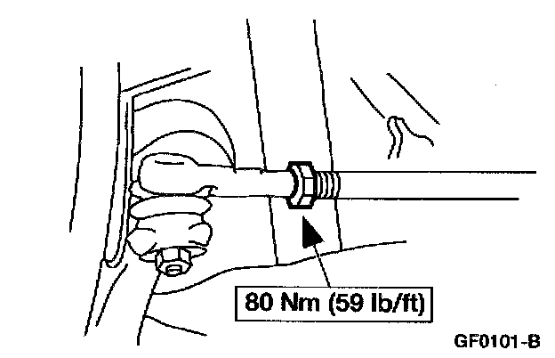 4. NOTE: Do not allow the steering gear bellows to twist when the front wheel spindle tie-rod is rotated.