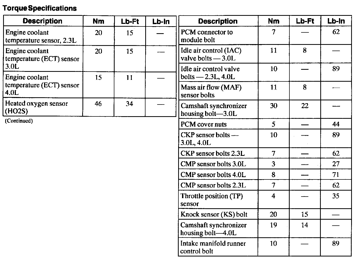 Torque Specifications: