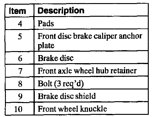 Front Disc Brake Components