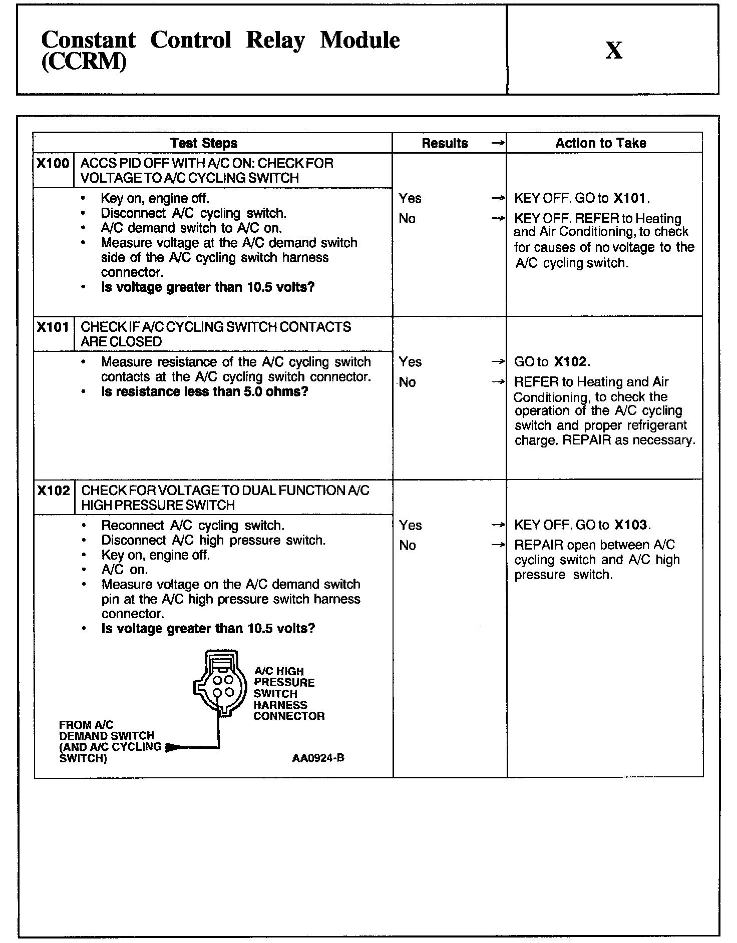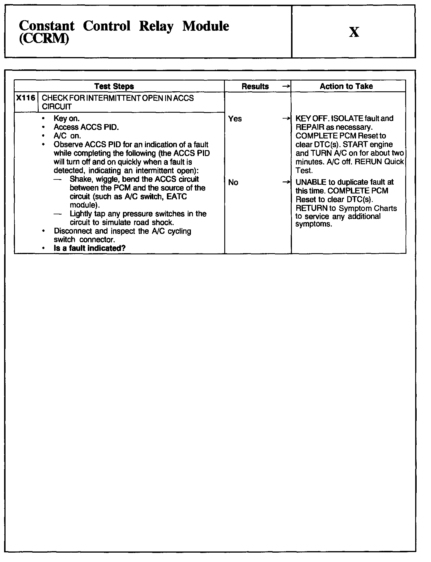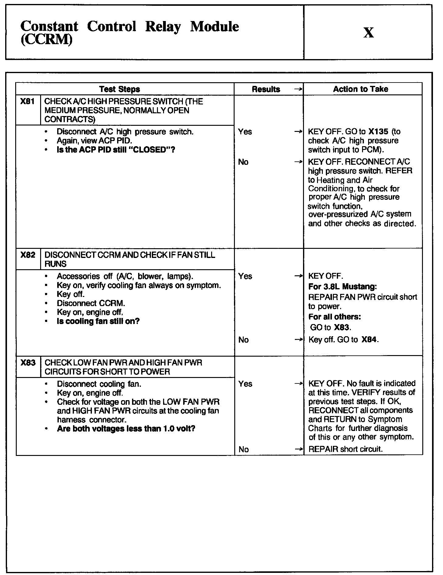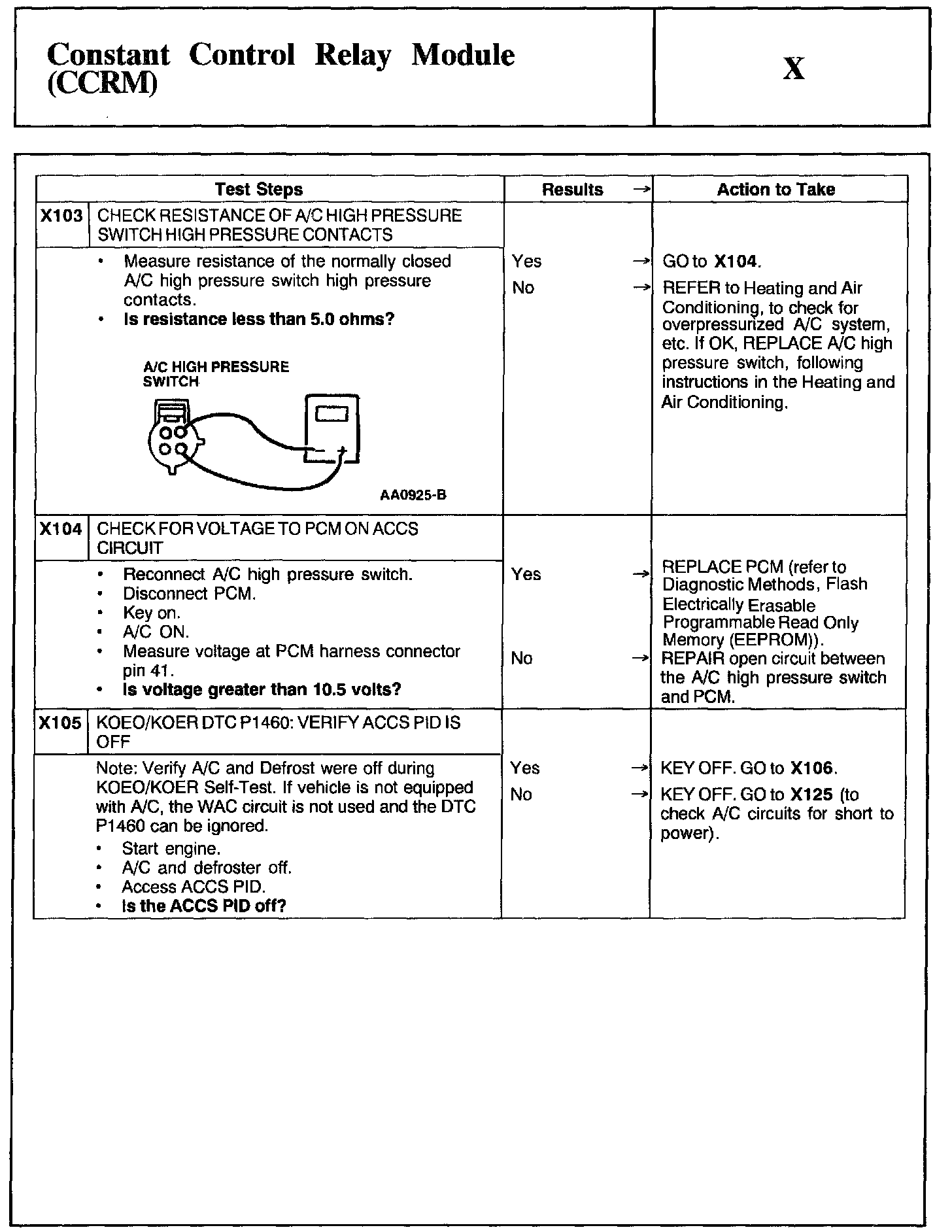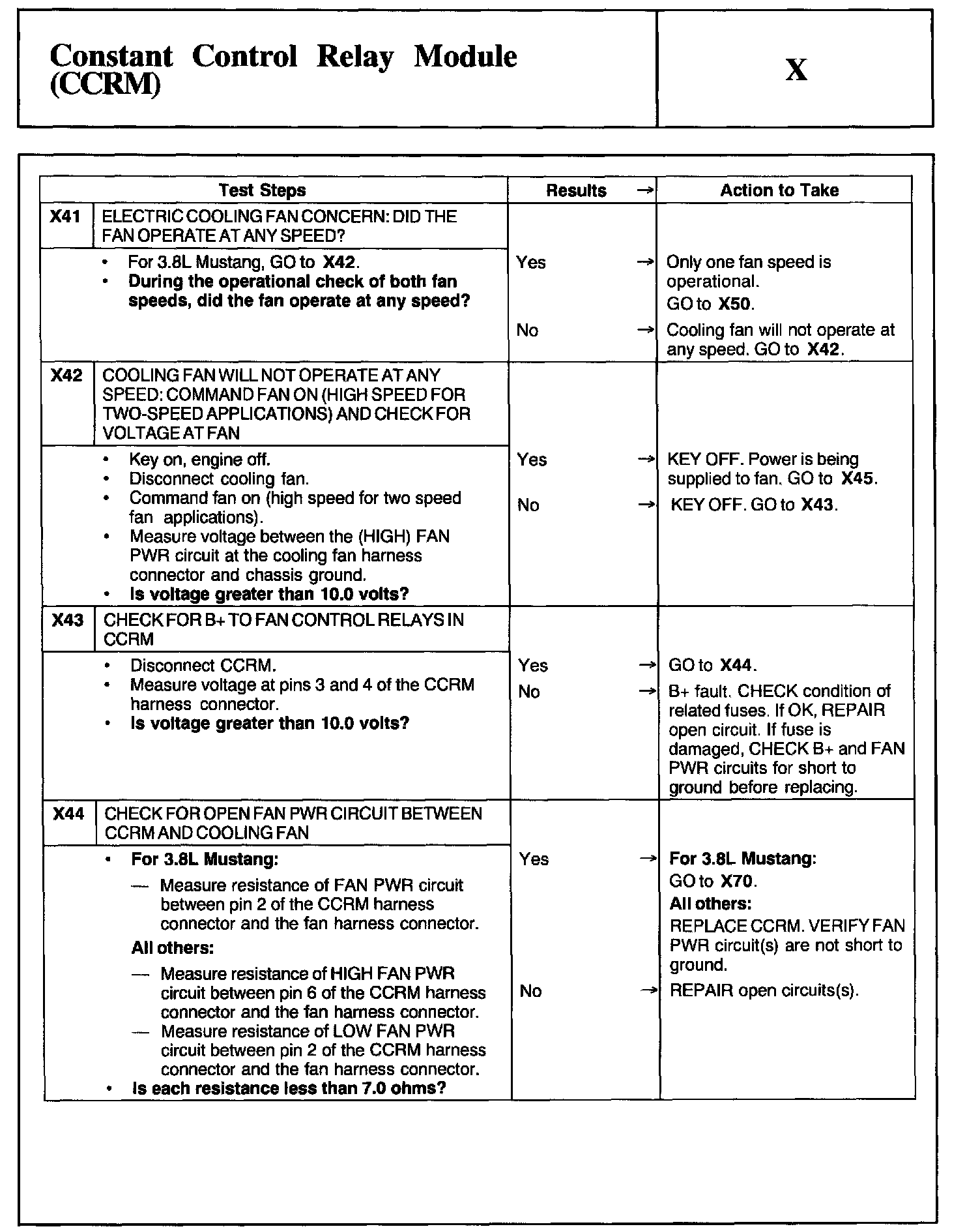 Home >> Ford >> 2002 >> Taurus V6-3.0L VIN U >> Repair and Diagnosis >> Powertrain Management >> Computers and Control Systems >> Testing and Inspection >> Pinpoint Tests >> Test X: Constant Control Relay Module (CCRM)