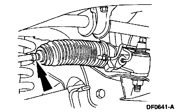 6. NOTE: Do not allow the steering gear bellows to twist when the front wheel spindle tie-rod is rotated.