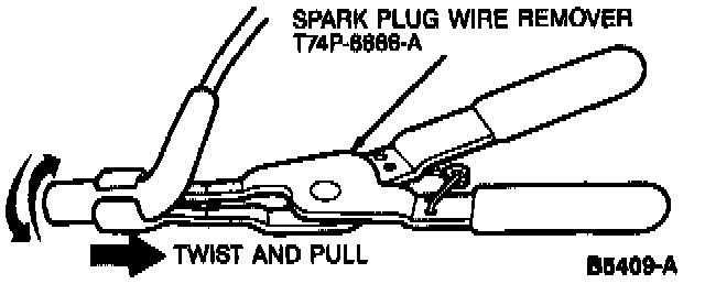 1. Use the special tool with a twisting motion to pull the spark plug wire off the spark plugs.