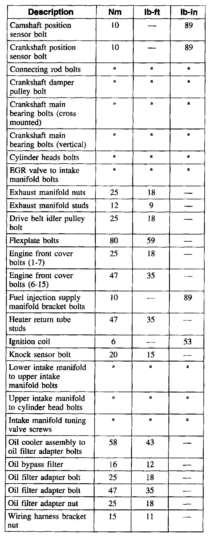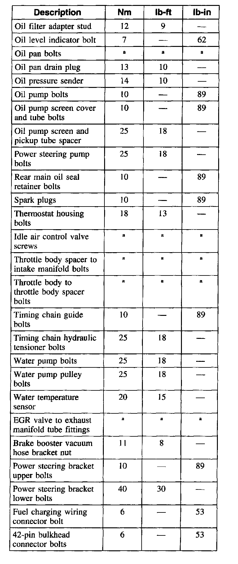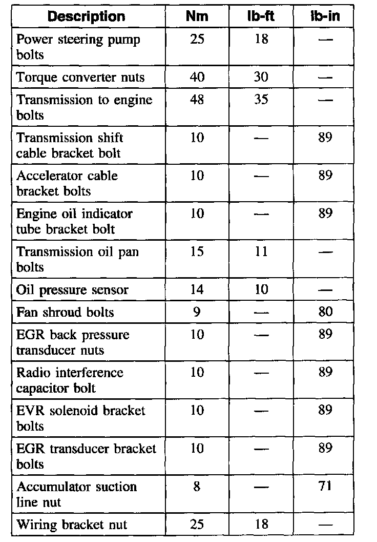 Torque Specifications
