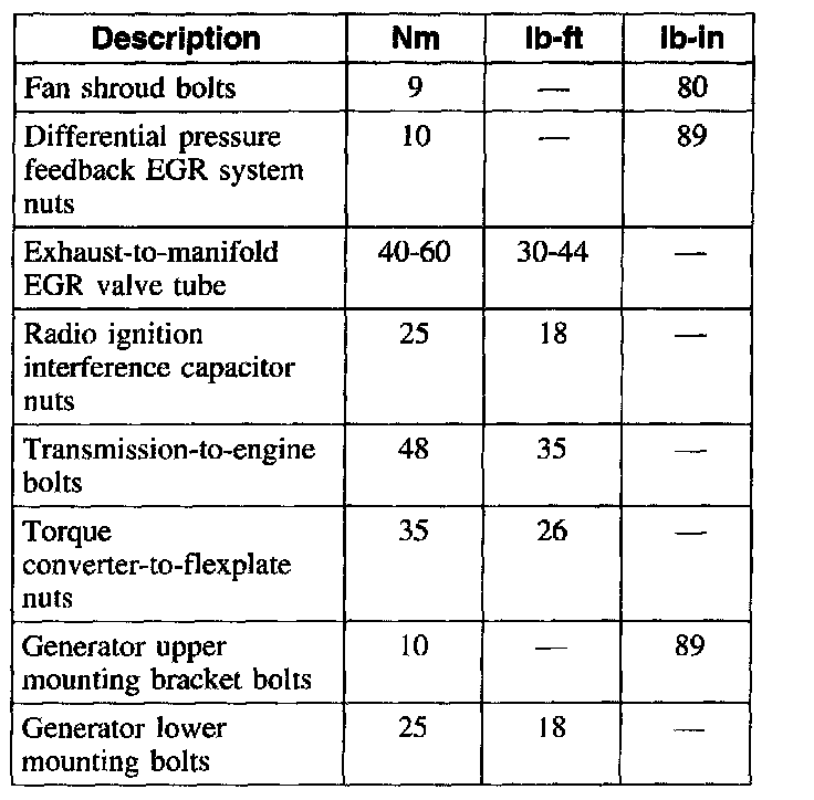 Torque Specifications