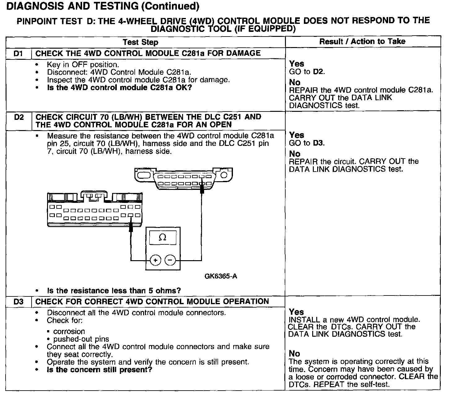 PINPOINT TEST D: THE 4-WHEEL DRIVE (4WD) CONTROL MODULE DOES NOT RESPOND TO THE DIAGNOSTIC TOOL (IF EQUIPPED)