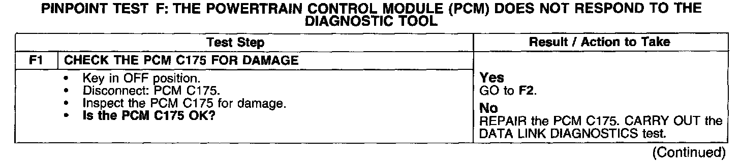 PINPOINT TEST F: THE POWERTRAIN CONTROL MODULE (PCM) DOES NOT RESPOND TO THE DIAGNOSTIC TOOL