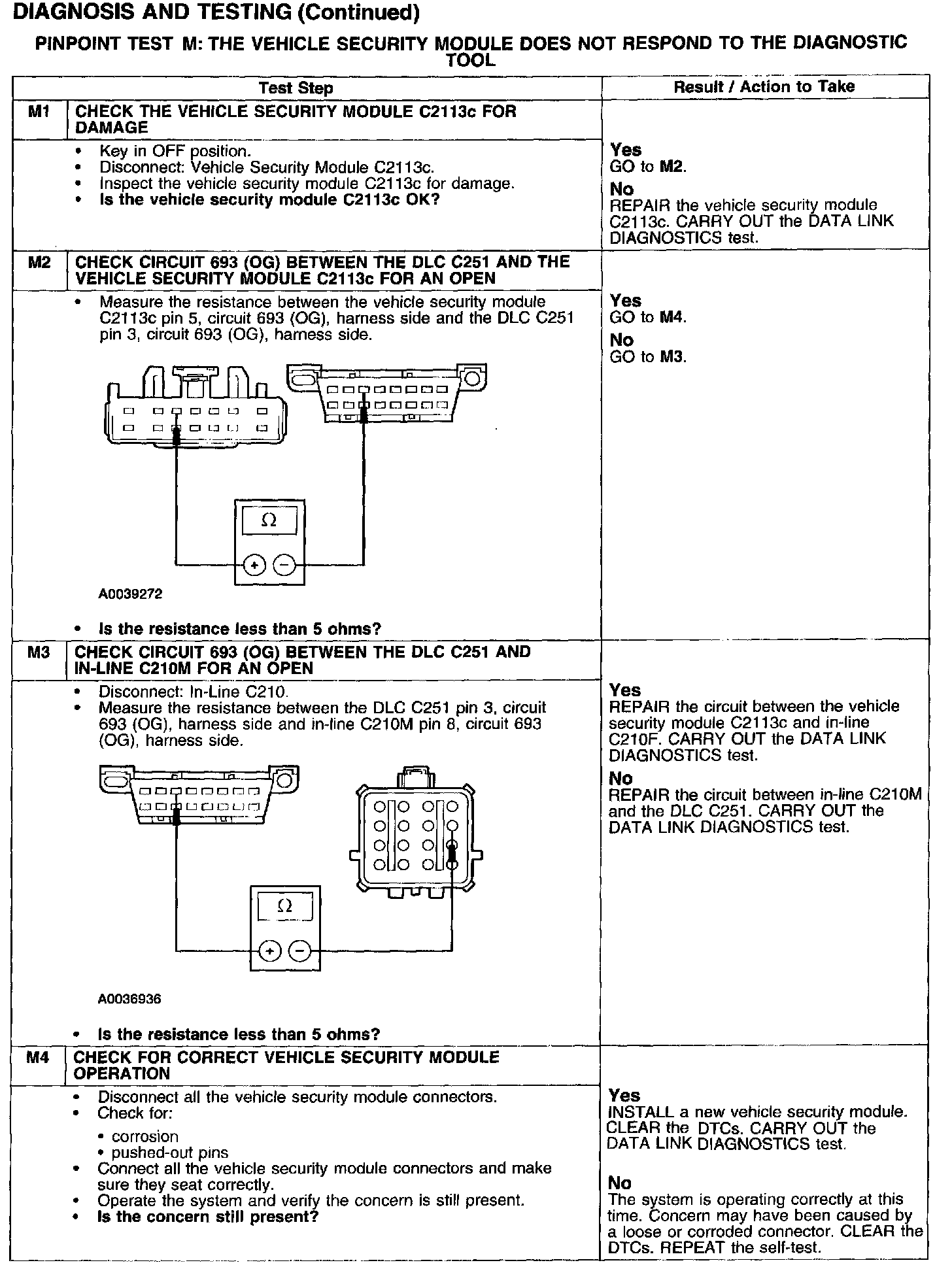 PINPOINT TEST M: THE VEHICLE SECURITY MODULE DOES NOT RESPOND TO THE DIAGNOSTIC TOOL