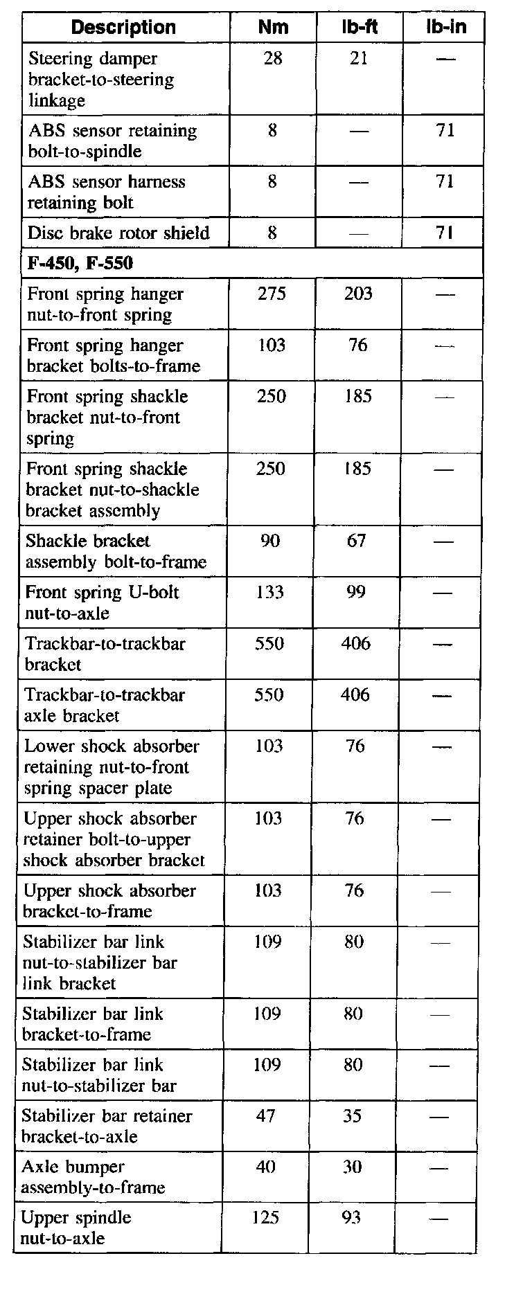 Torque Specifications