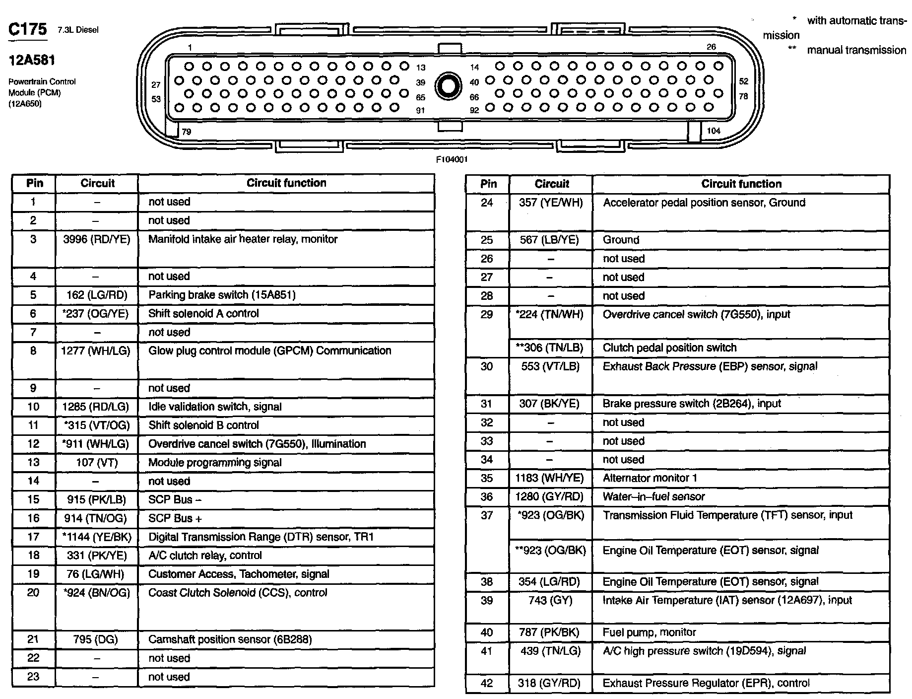 Excursion 2WD V8-7.3L DSL Turbo VIN F