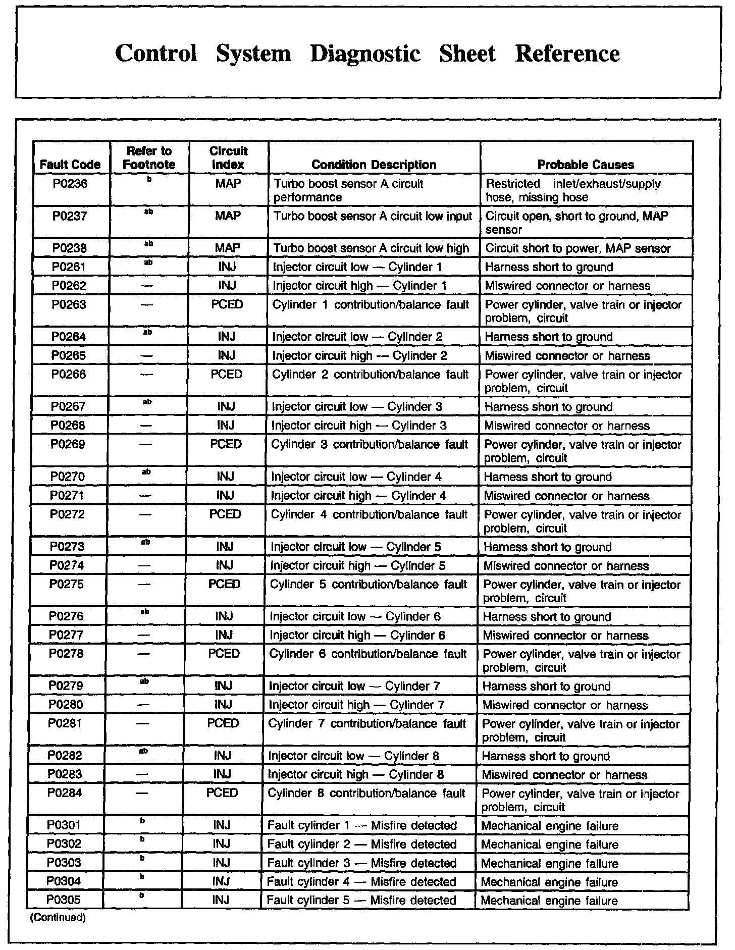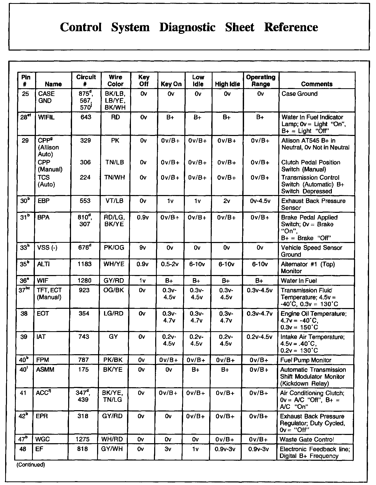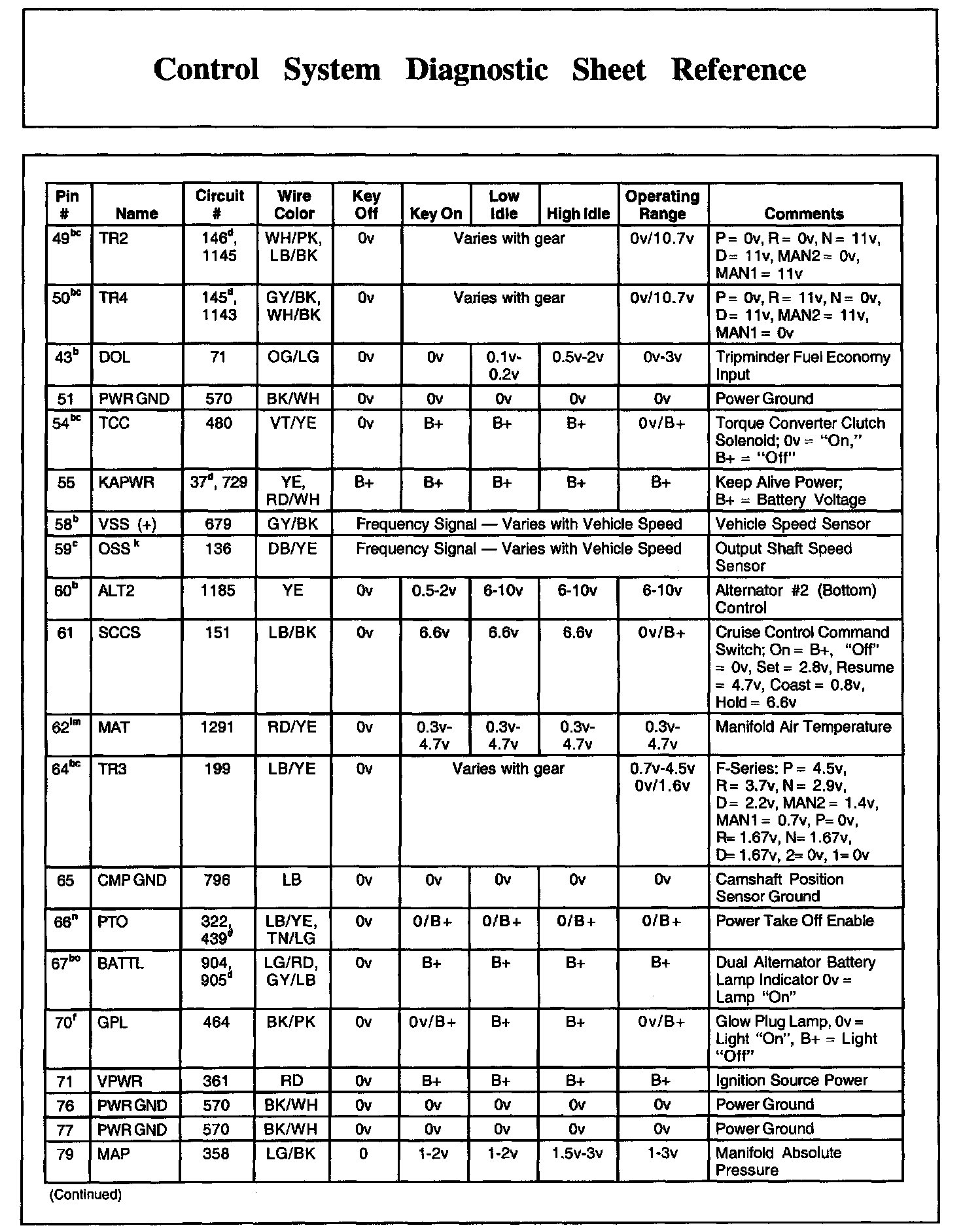 Control System Diagnostic Sheet Reference, Part 2: