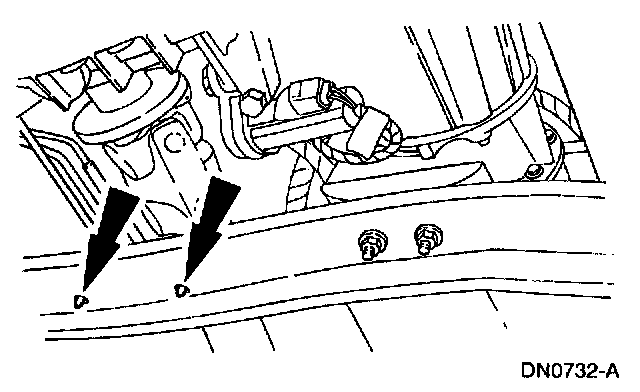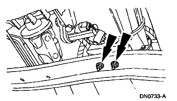 8. Remove the transmission support crossmember nuts and bolts (LH side).