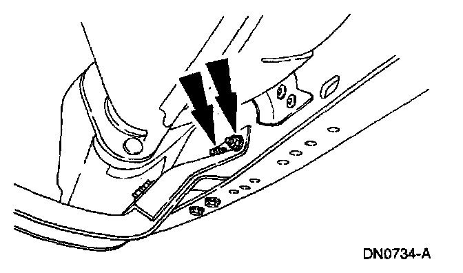 2. Loosely install the transmission support crossmember nuts and bolts (RH side).
