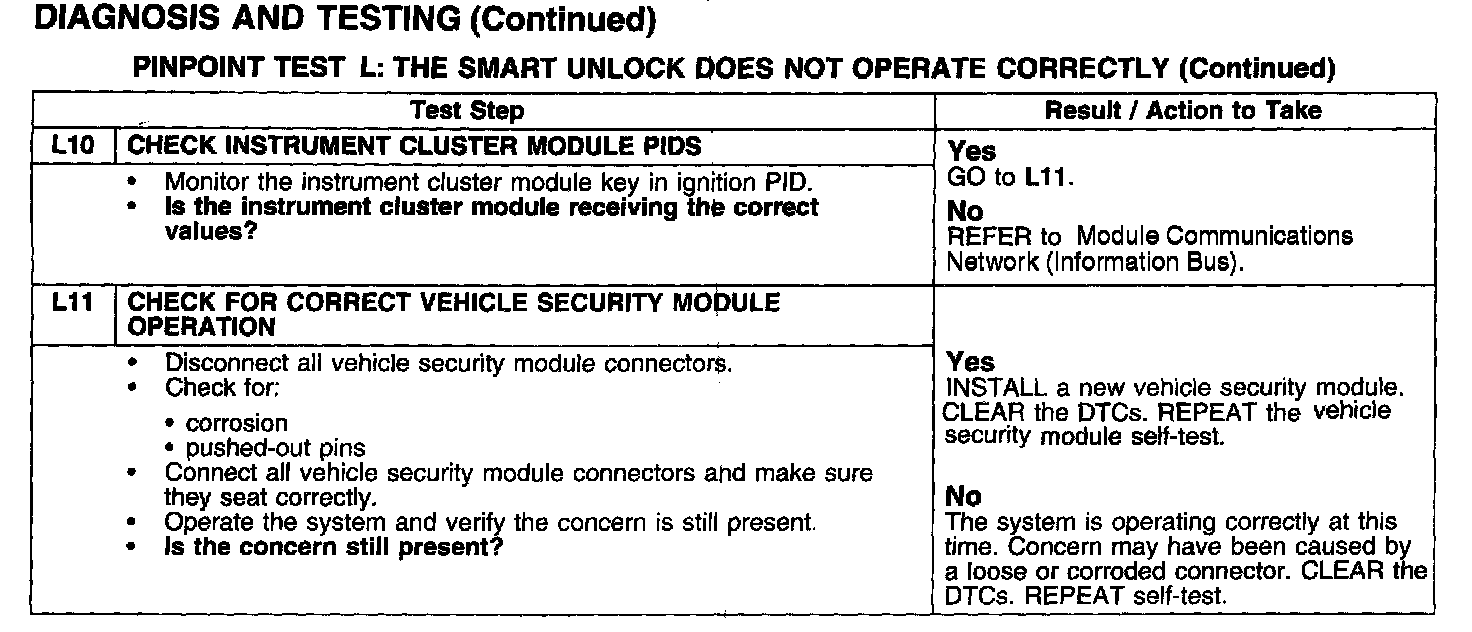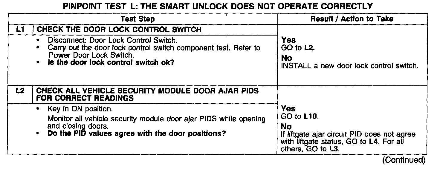 PINPOINT TEST L: THE SMART UNLOCK DOES NOT OPERATE CORRECTLY