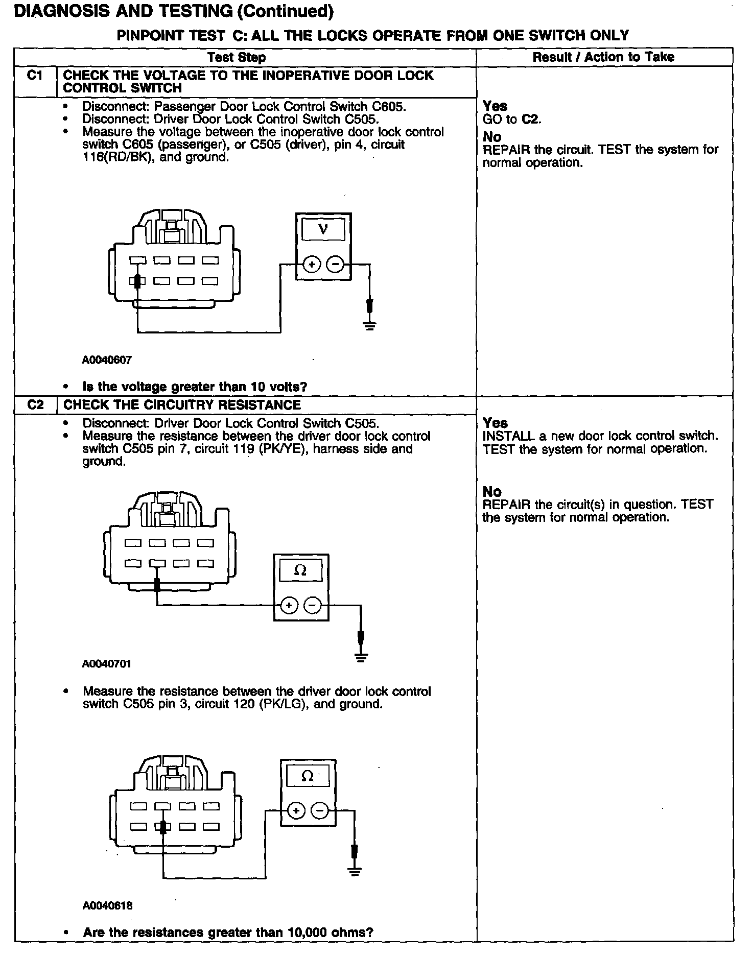 PINPOINT TEST C: ALL THE LOCKS OPERATE FROM ONE SWITCH ONLY