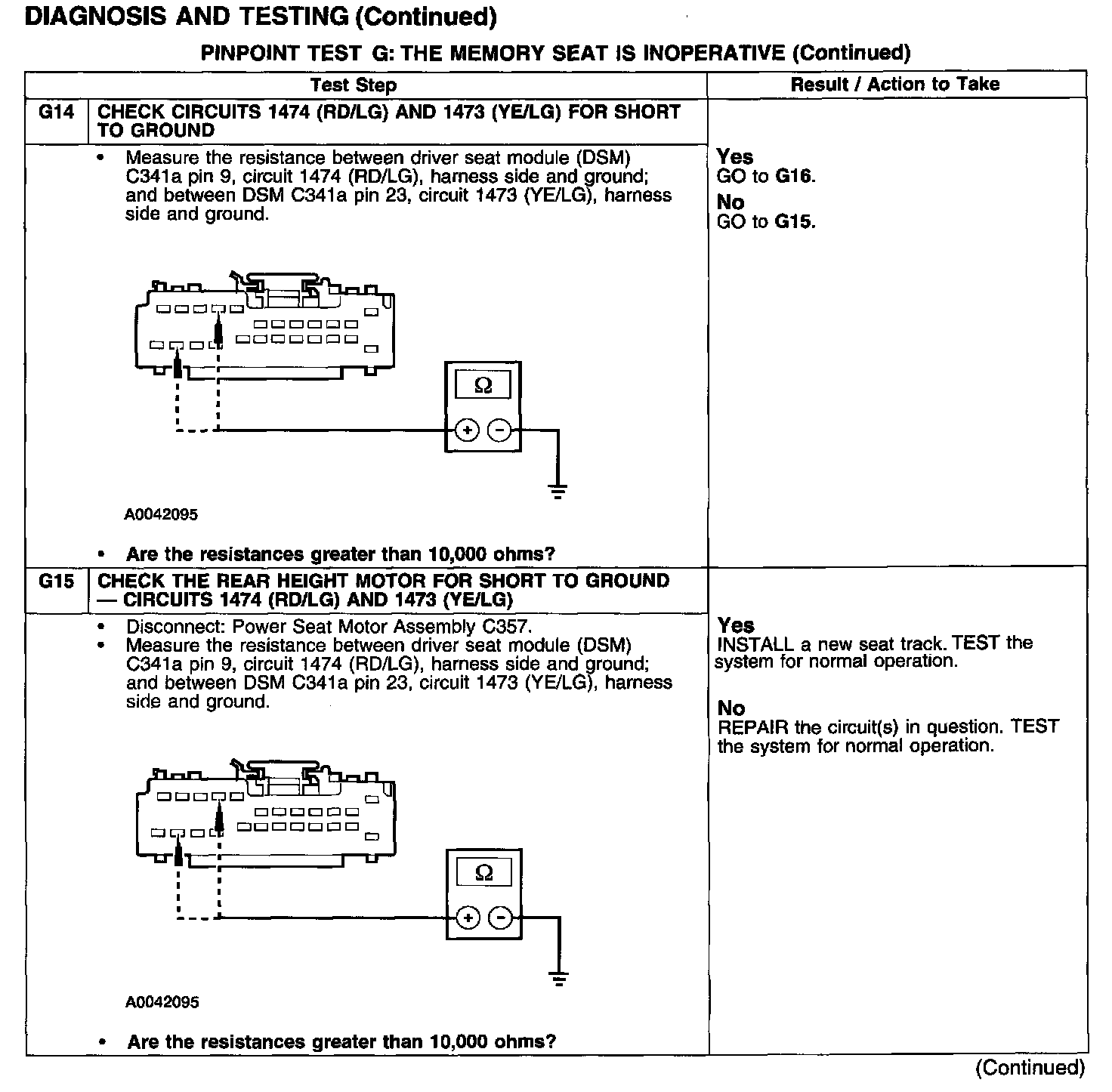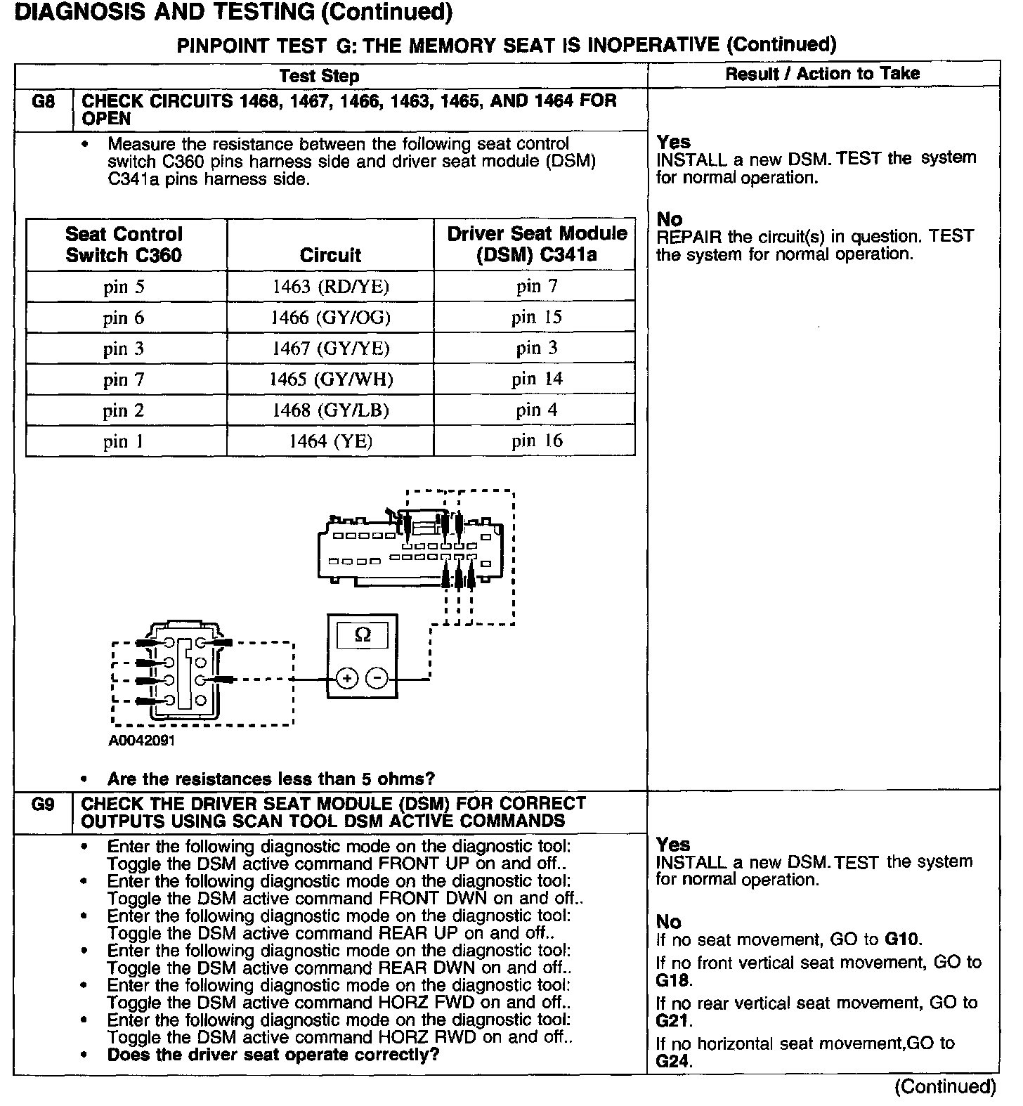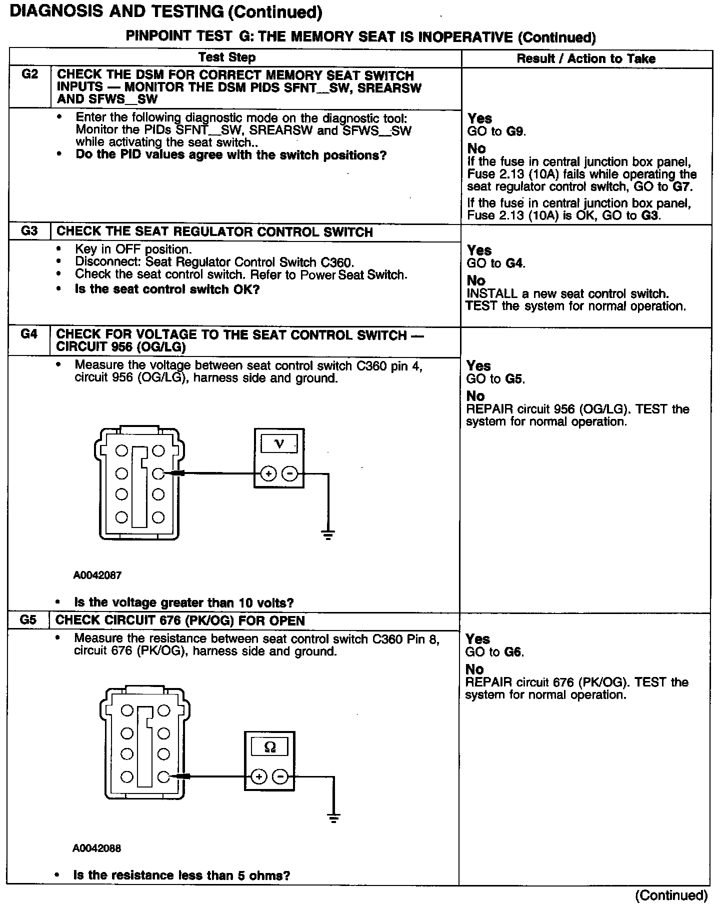 PINPOINT TEST G: THE MEMORY SEAT IS INOPERATIVE