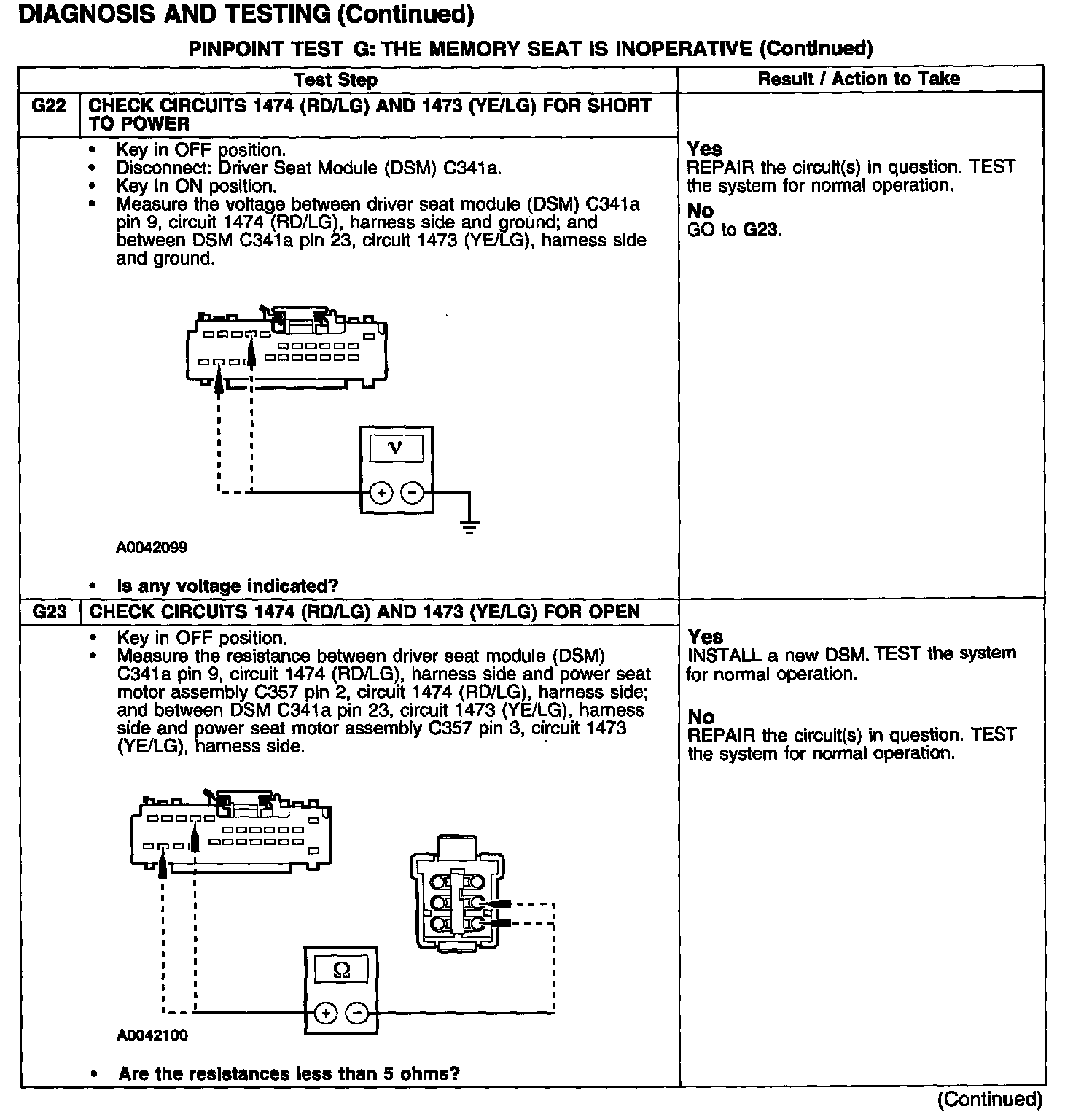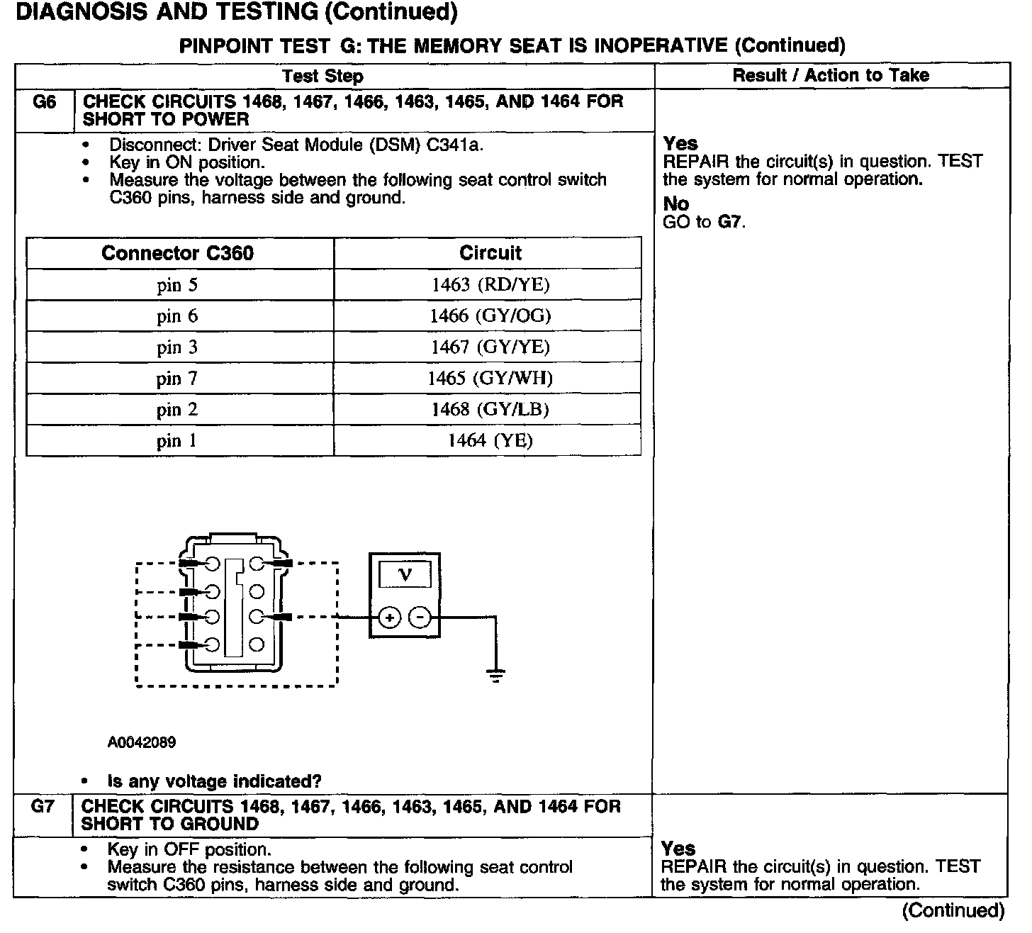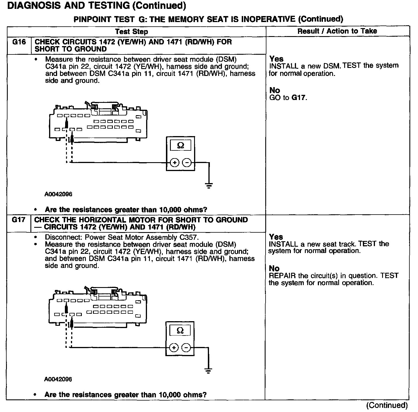 PINPOINT TEST G: THE MEMORY SEAT IS INOPERATIVE
