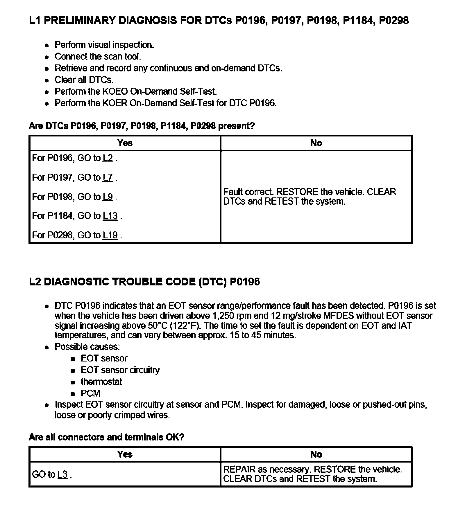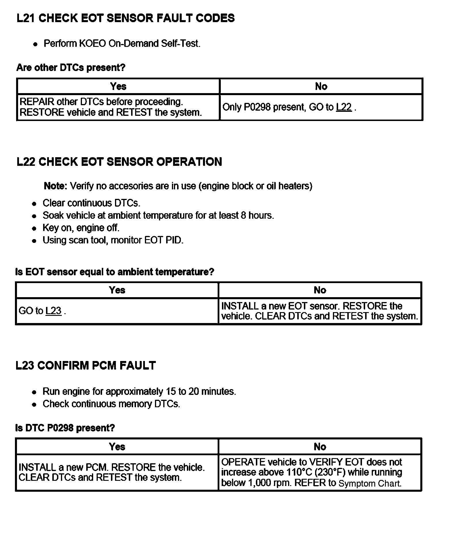 PINPOINT TEST L: ENGINE OIL TEMPERATURE (EOT) SENSOR