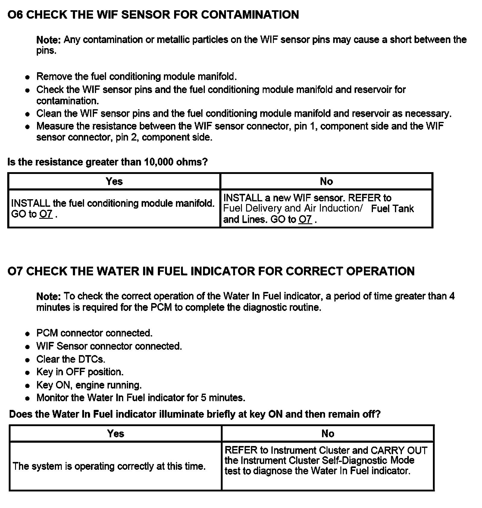 PINPOINT TEST O: WATER IN FUEL (WIF) SENSOR