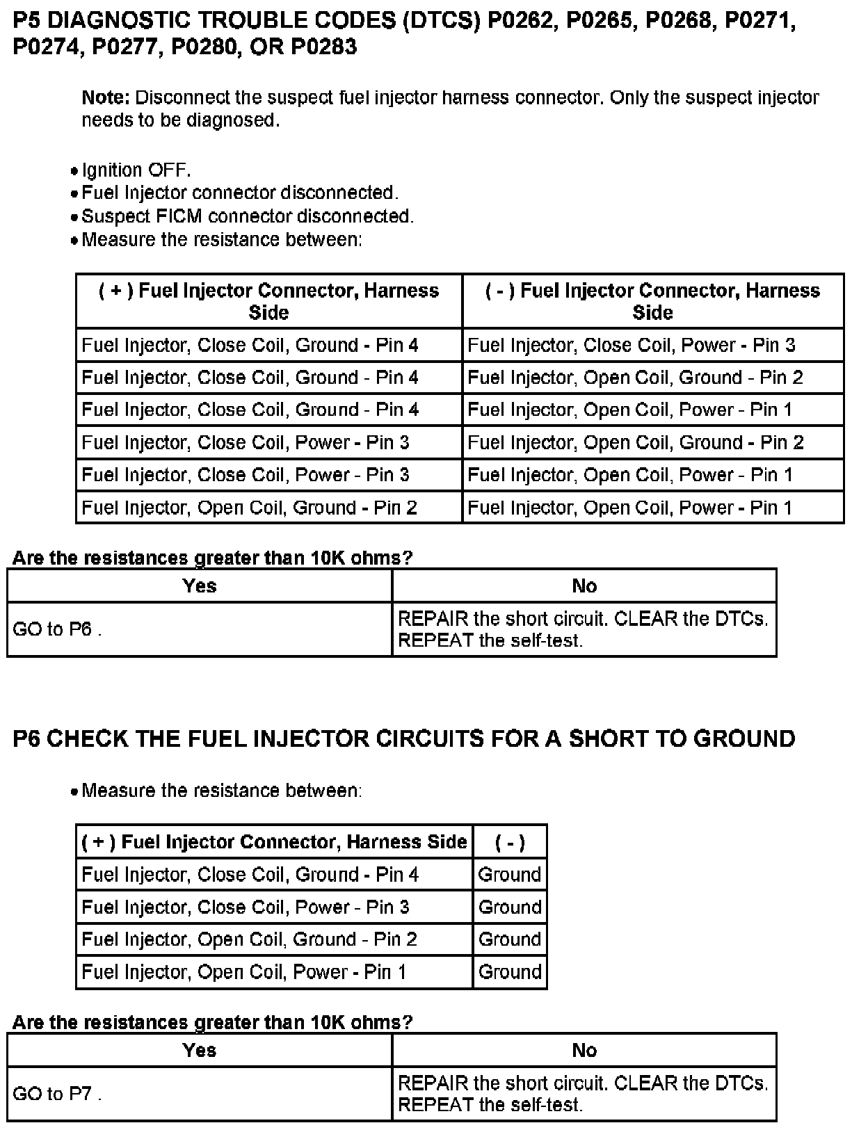 PINPOINT TEST P: MISFIRE/INJECTOR DRIVER CIRCUIT OPERATION