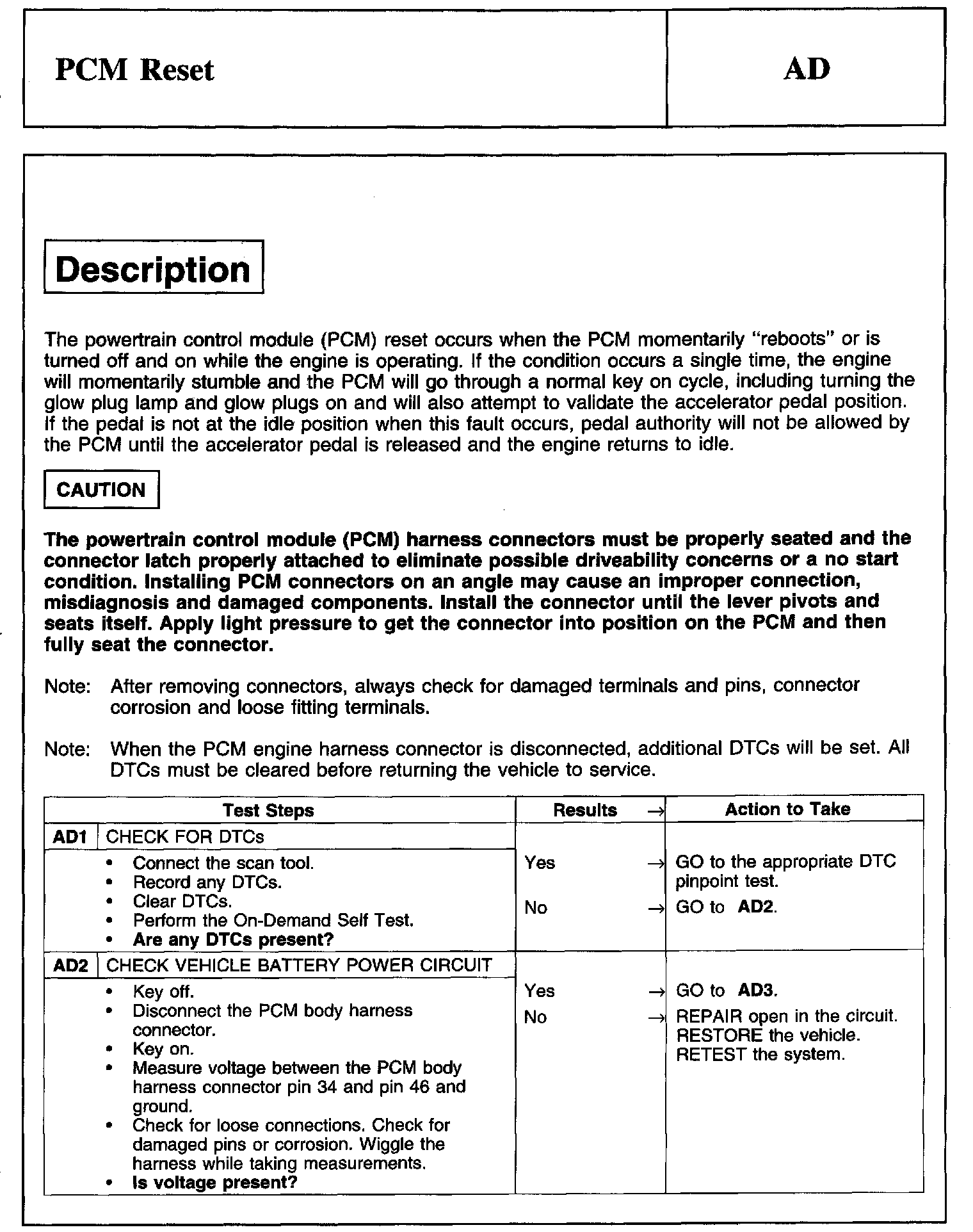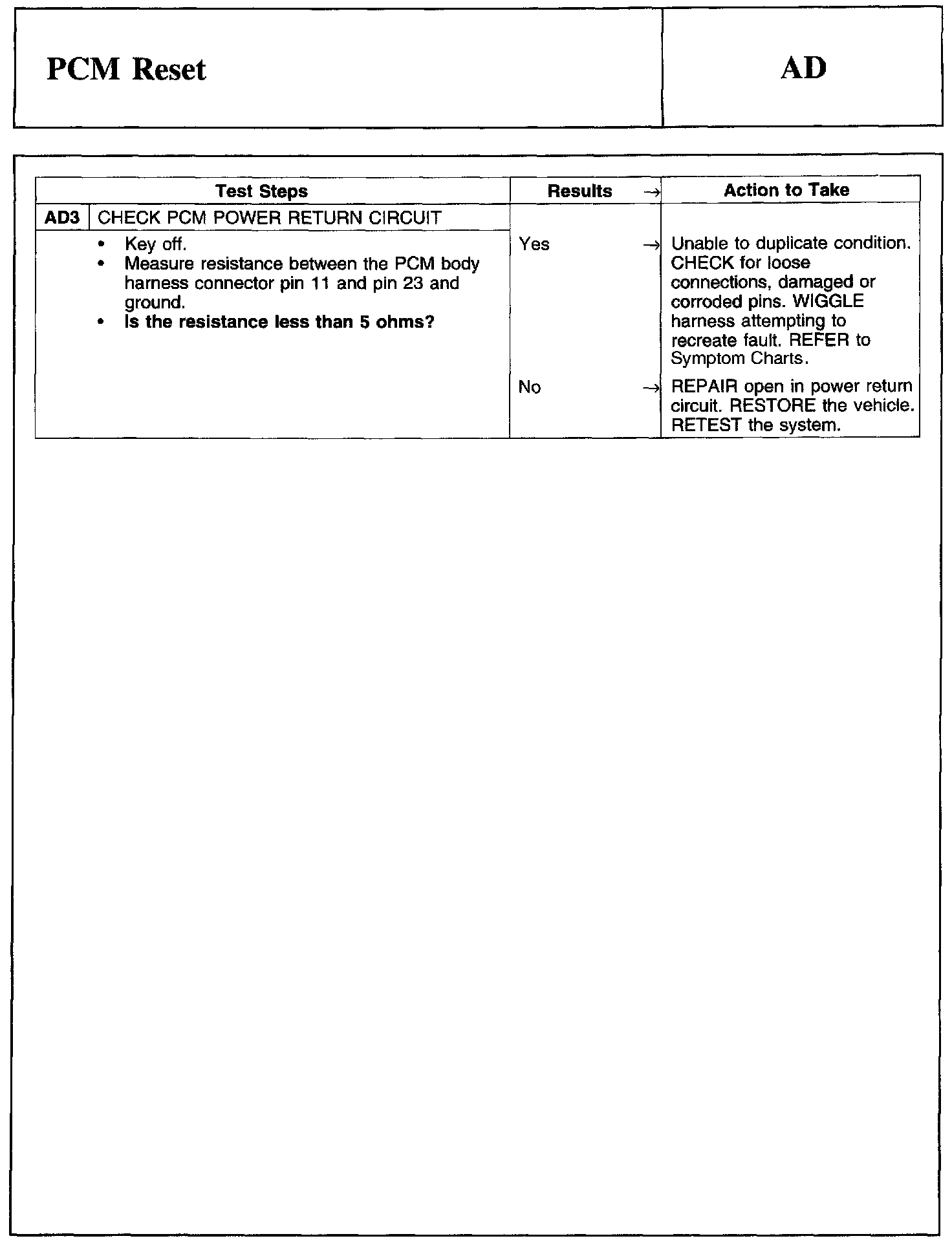 PINPOINT TEST AD: PCM RESET