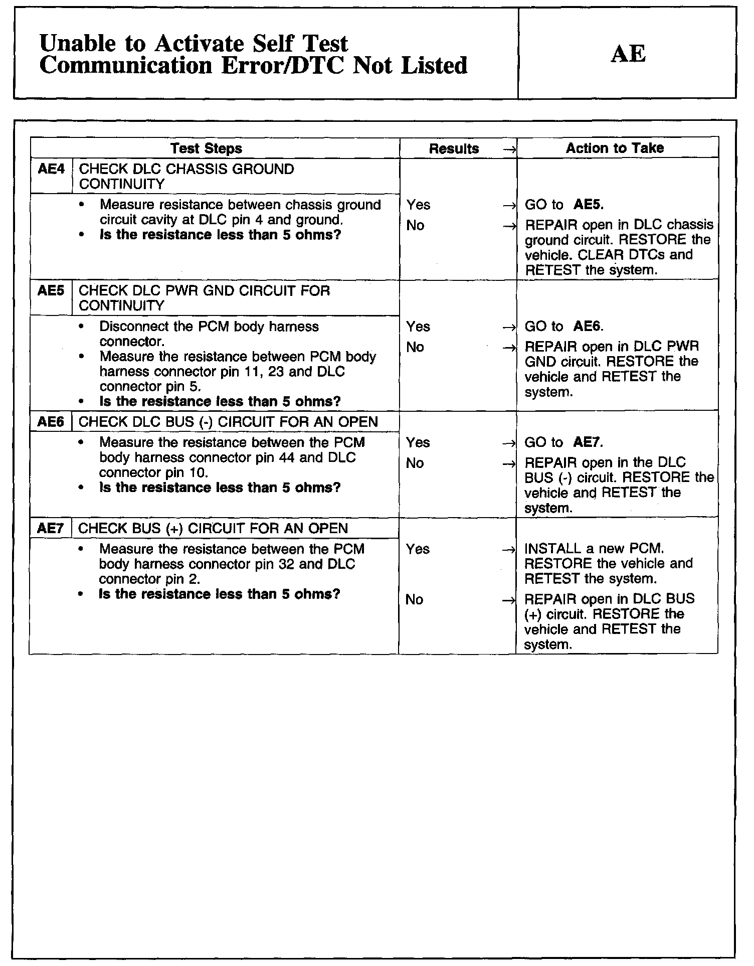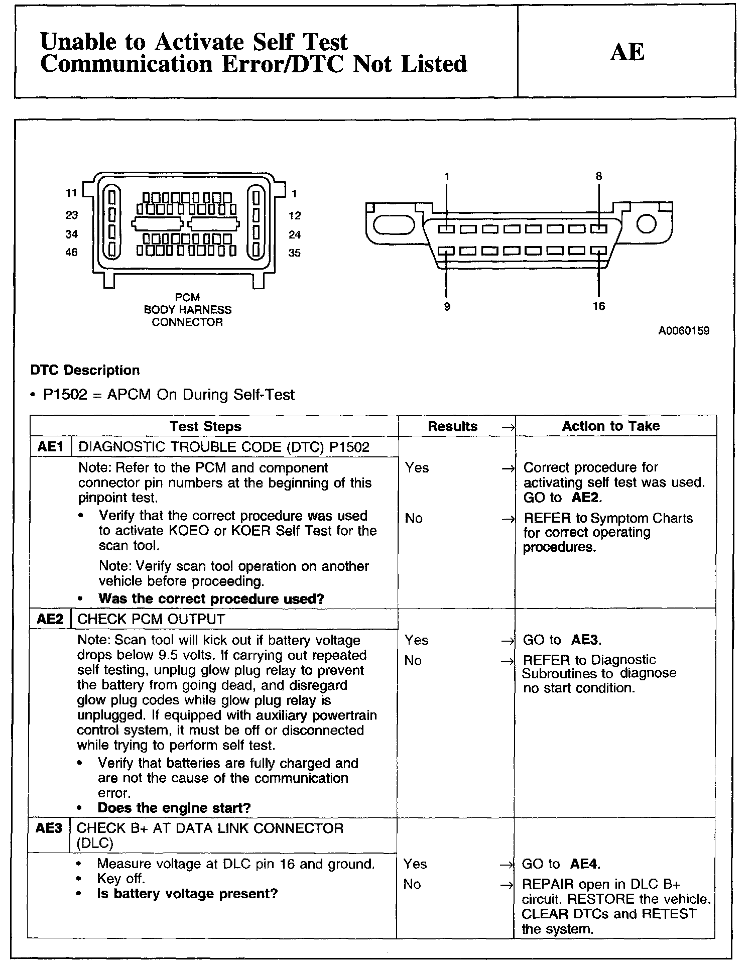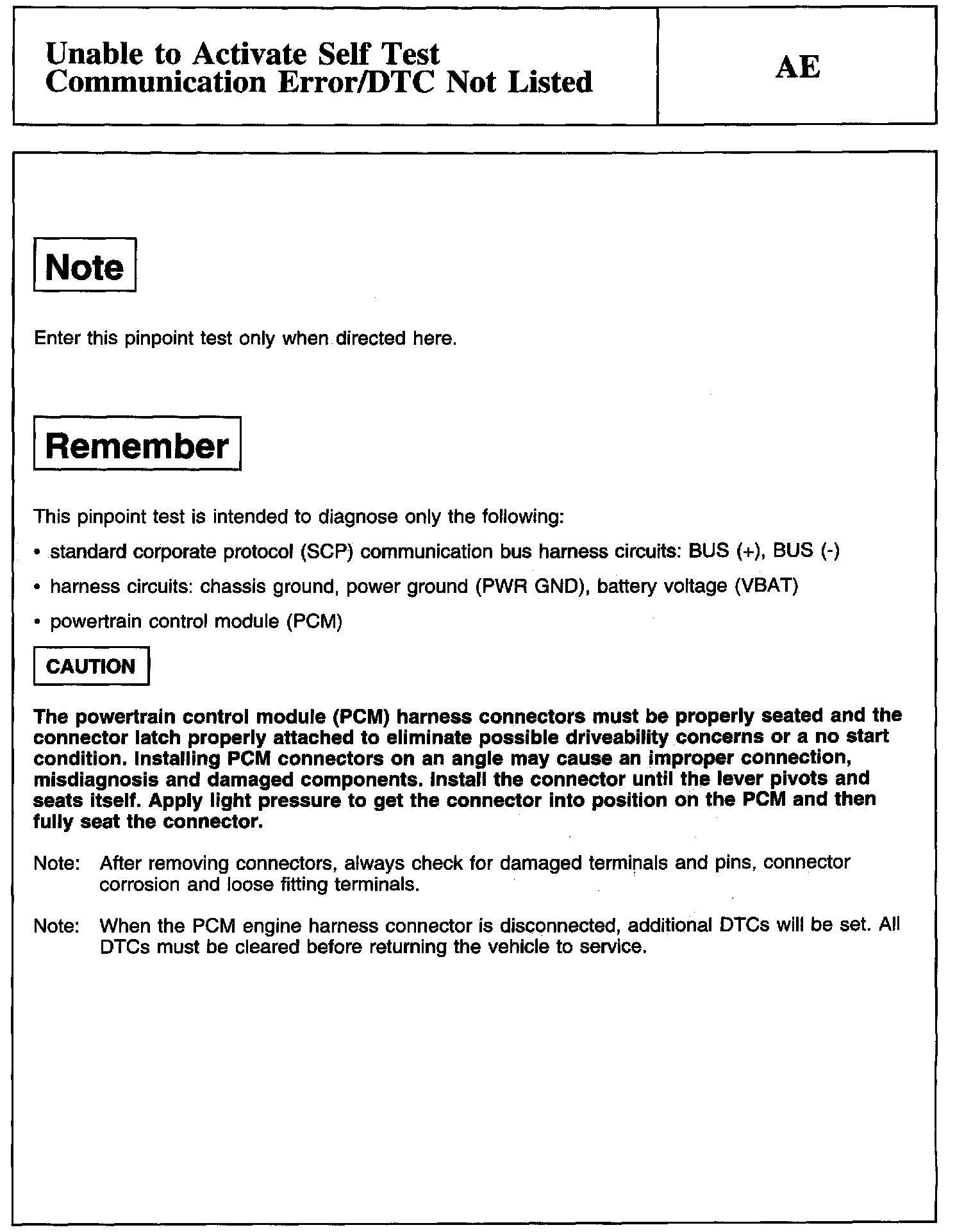 PINPOINT TEST AE: UNABLE TO ACTIVATE SELF TEST COMMUNICATION ERROR/DTC NOT LISTED