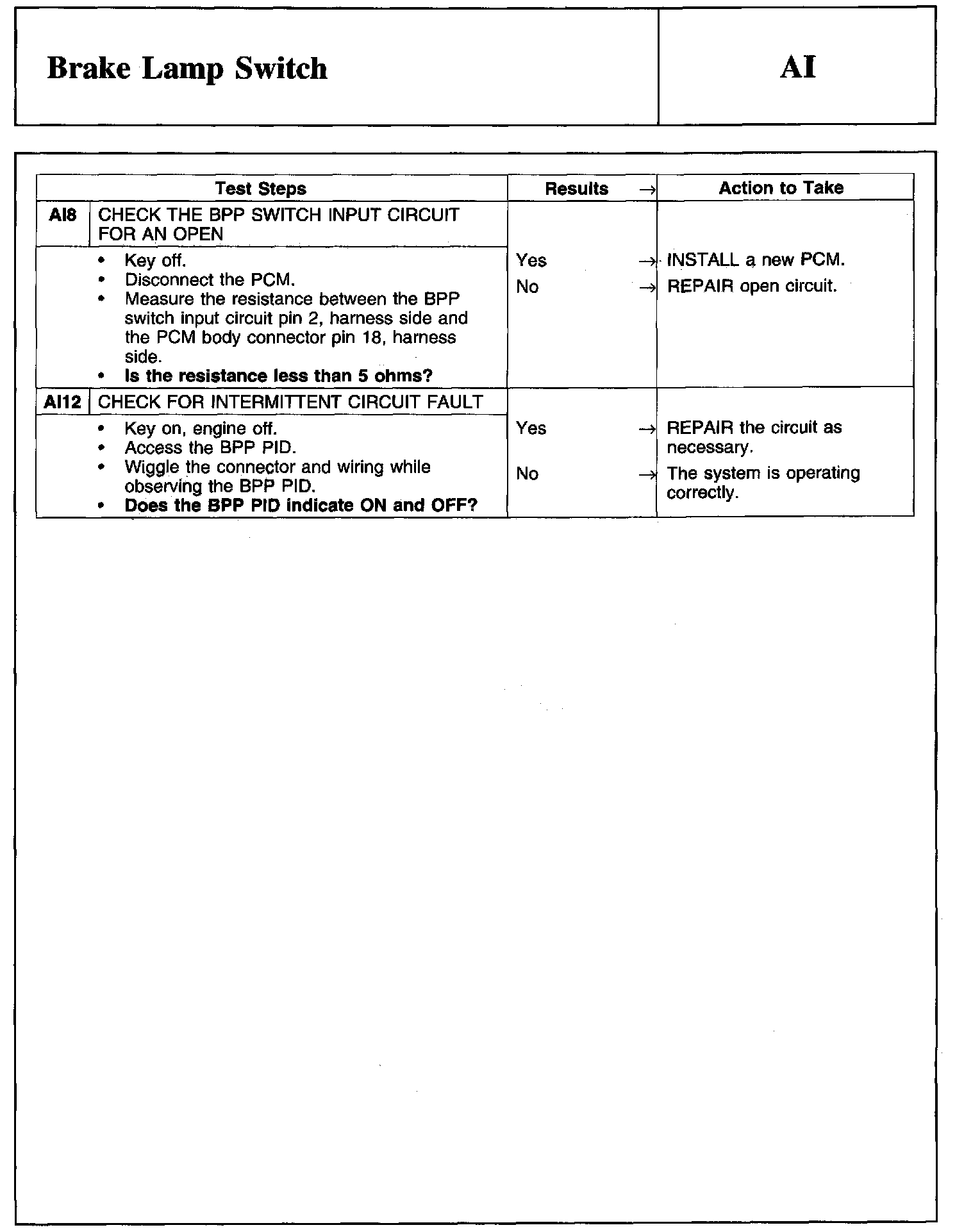 PINPOINT TEST AI: BRAKE LAMP SWITCH