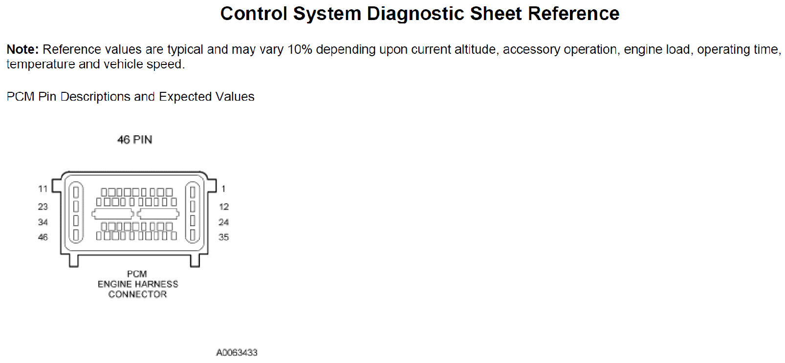 CONTROL SYSTEM DIAGNOSTIC SHEET REFERENCE
