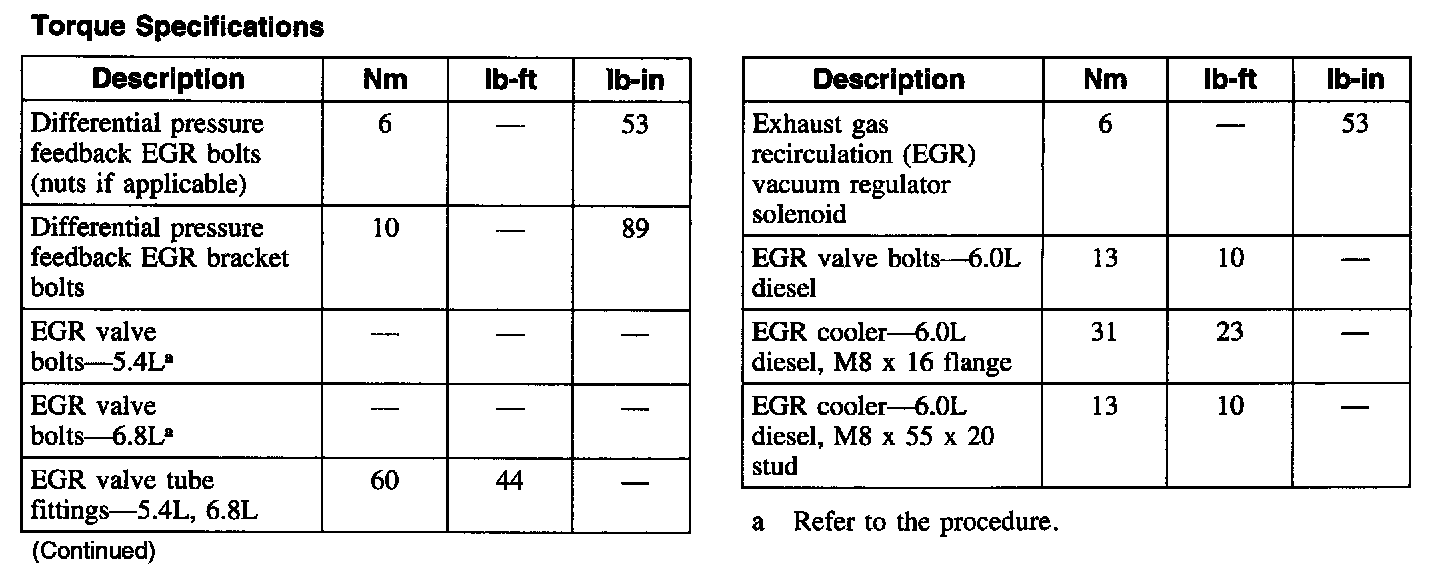 Torque Specifications:
