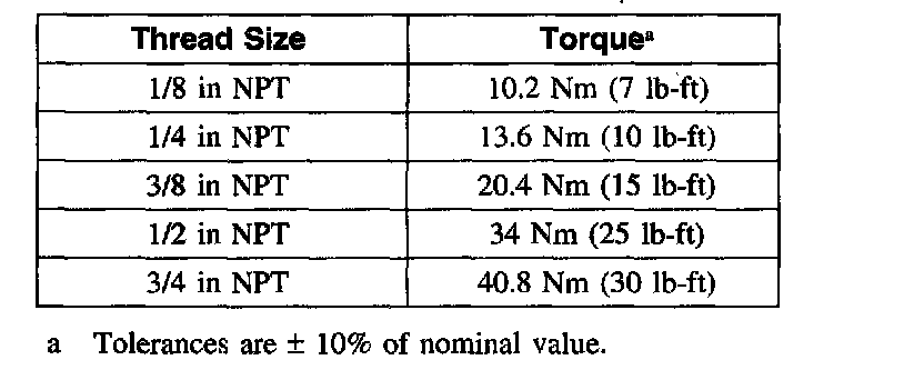 Standard Torque - Pipe Thread