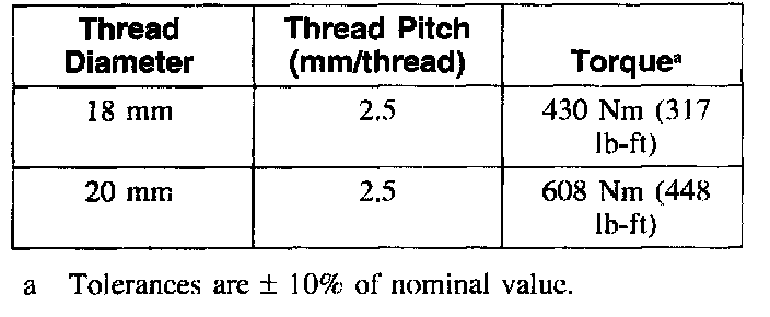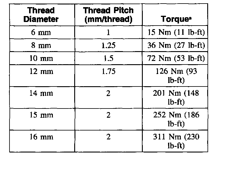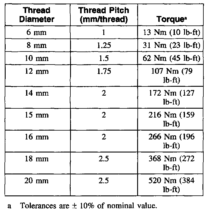 Standard Torques - Class 12.9 Metric Bolts and Studs
