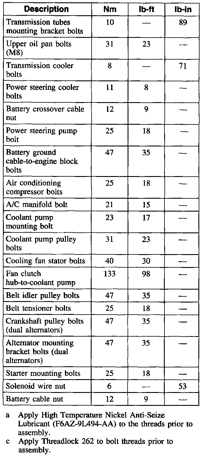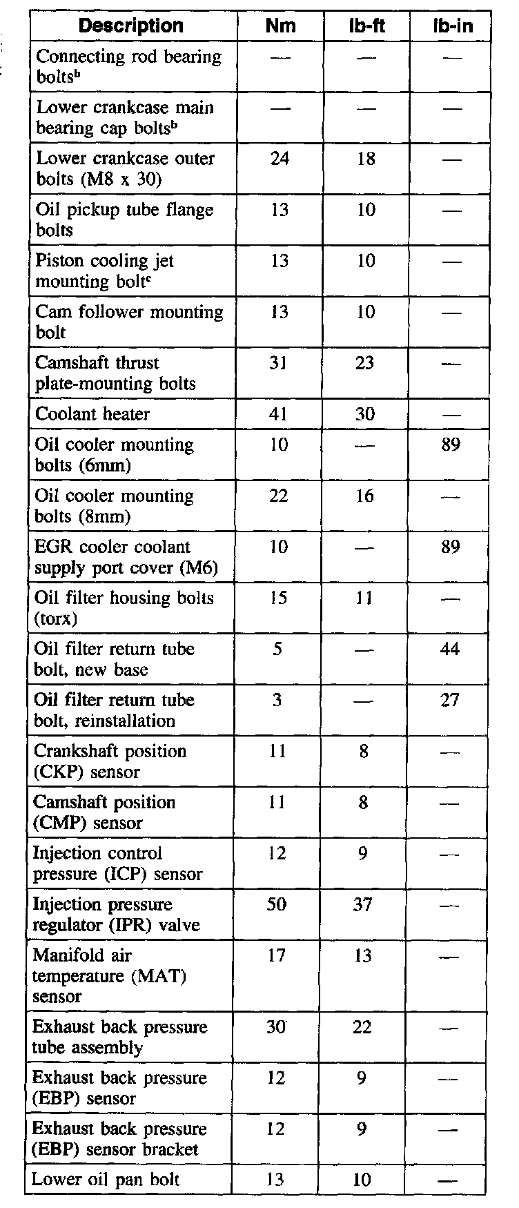 Torque Specifications
