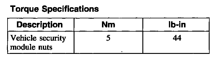 Vehicle Security Module (VSM) - Torque Specifications: