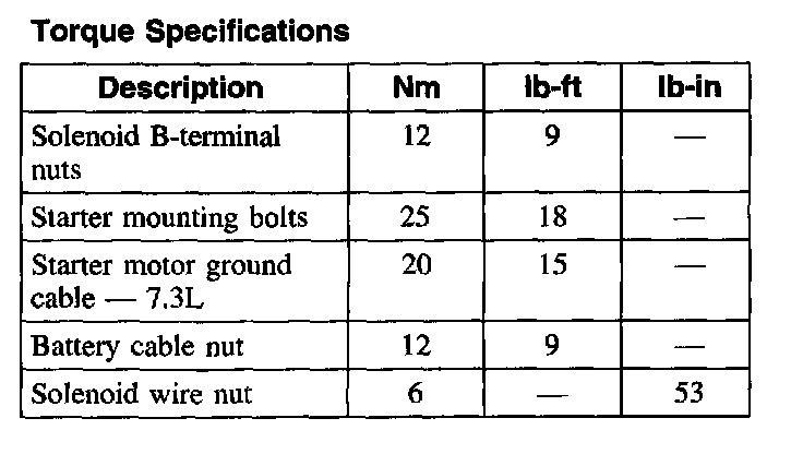 Torque Specifications: