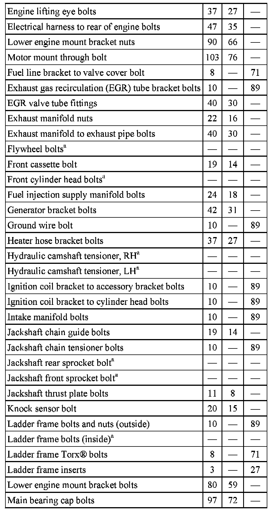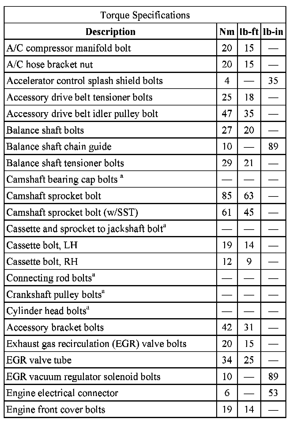 Home >> Ford >> 2003 >> Explorer 2WD V6-4.0L VIN E >> Repair and Diagnosis >> Specifications >> Mechanical Specifications >> Engine >> System Specifications >> Torque Specifications