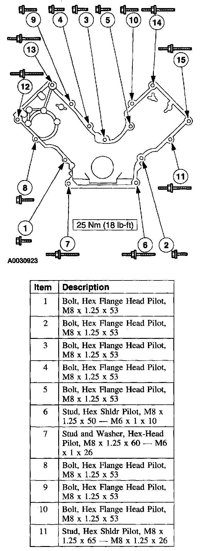 Engine Front Cover Bolts 25 Nm (18 ft. lbs.)