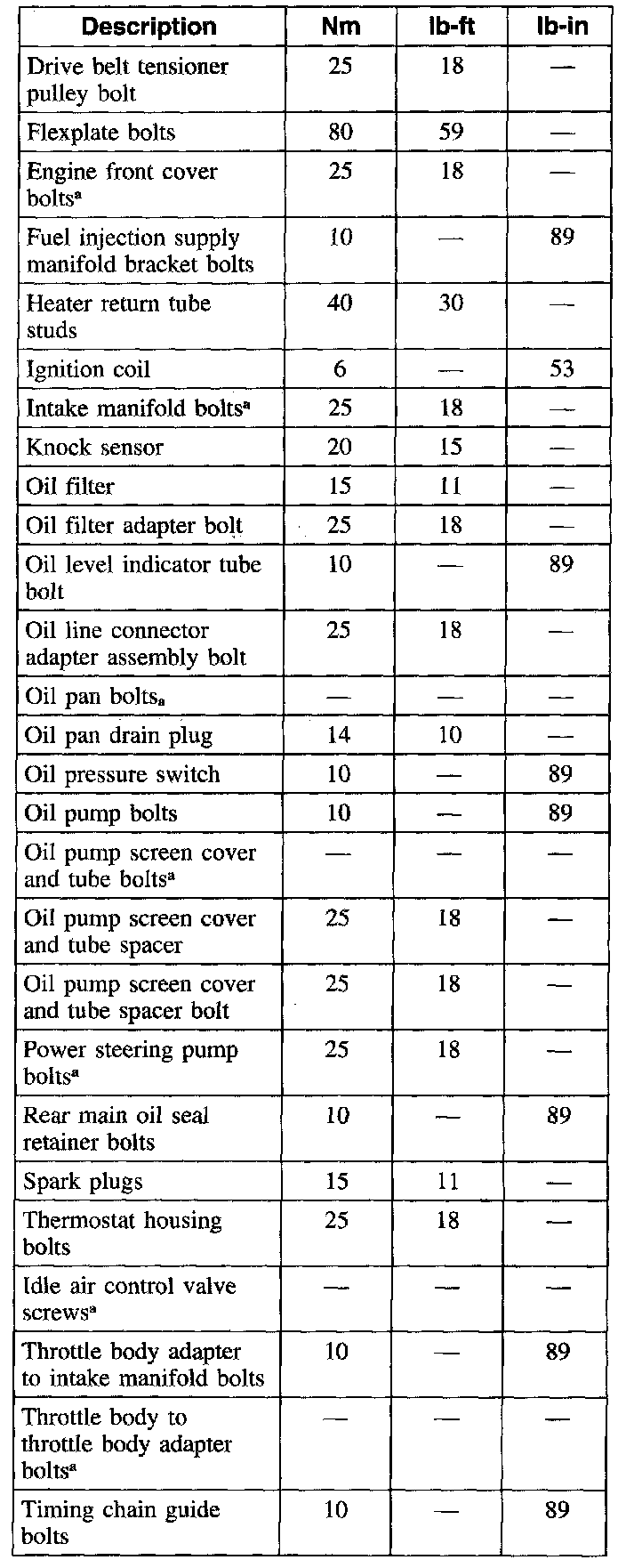 Torque Specifications
