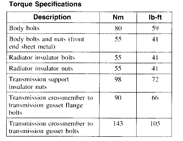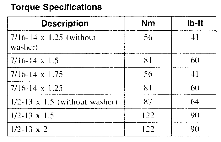 Torque Specifications:
