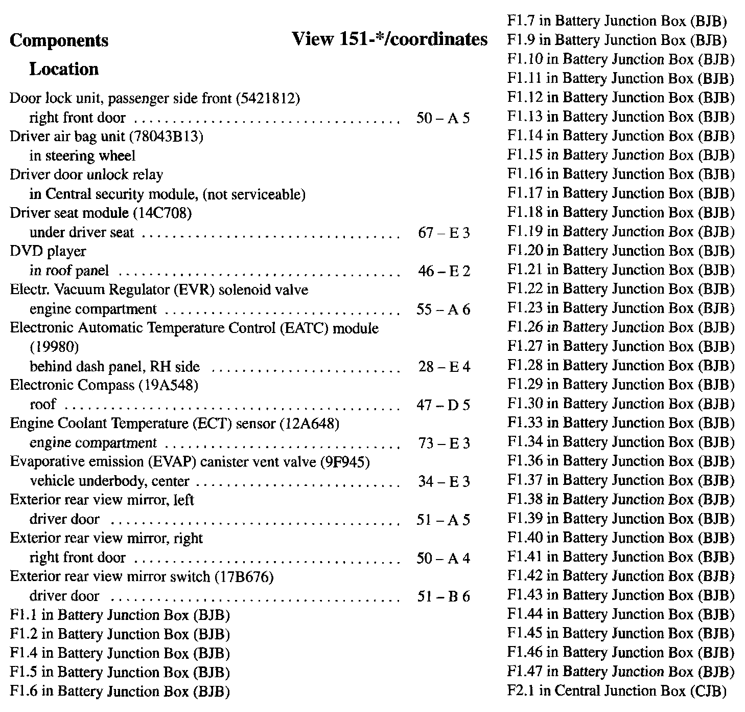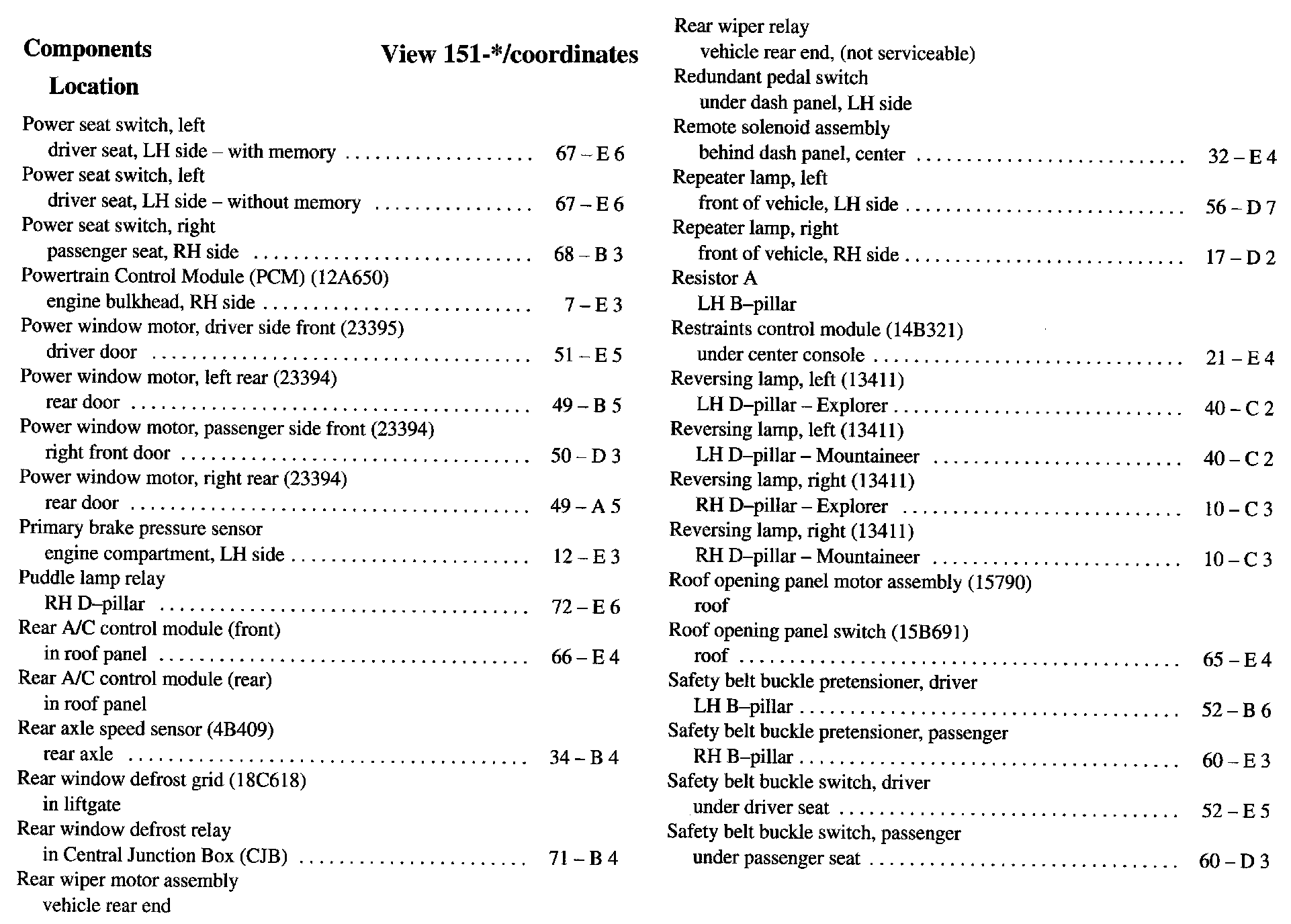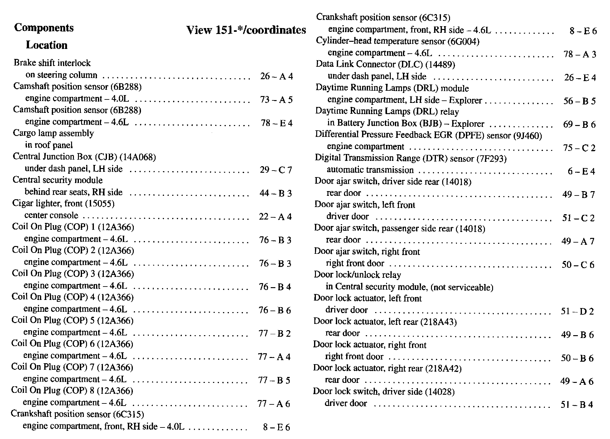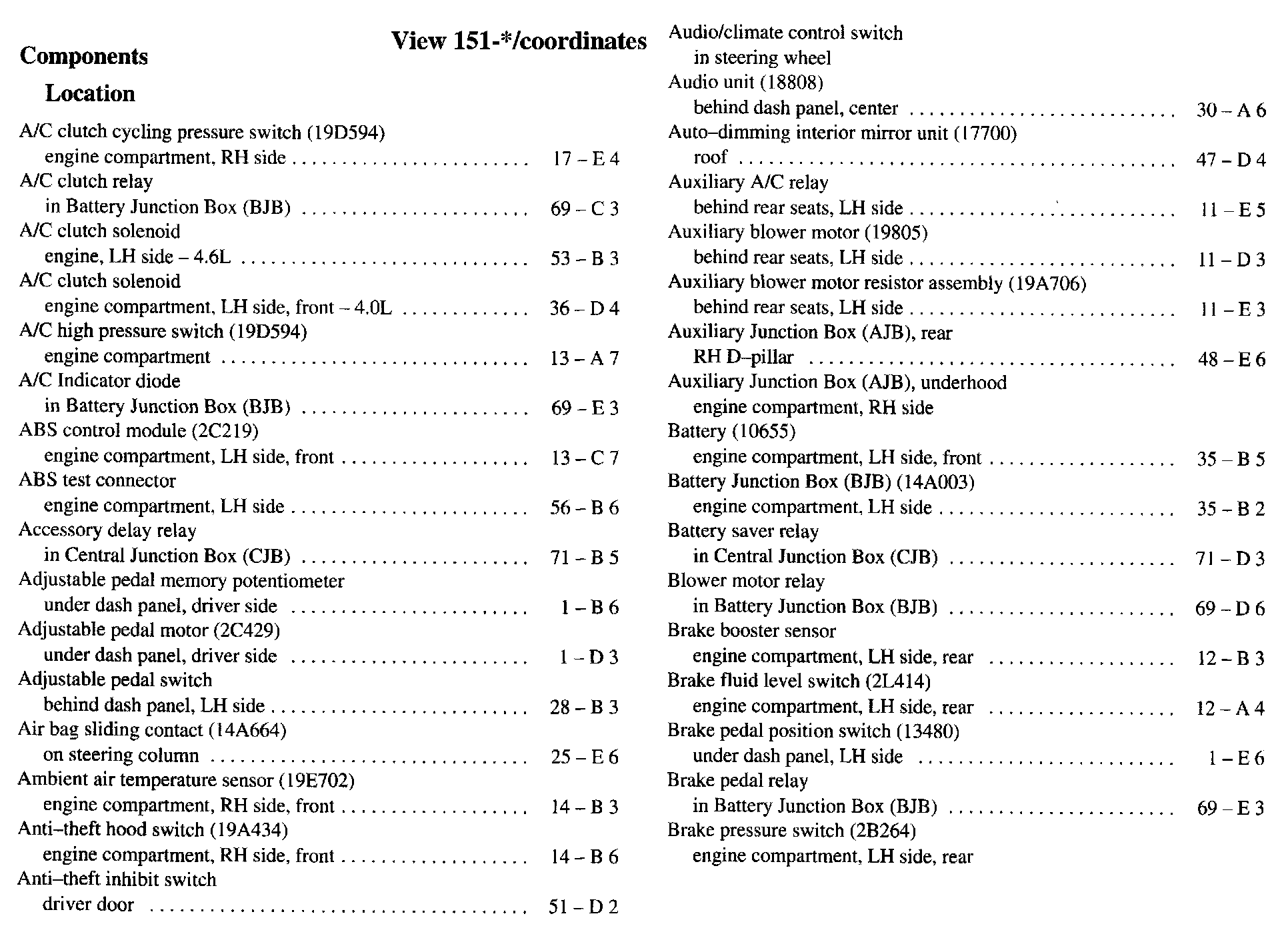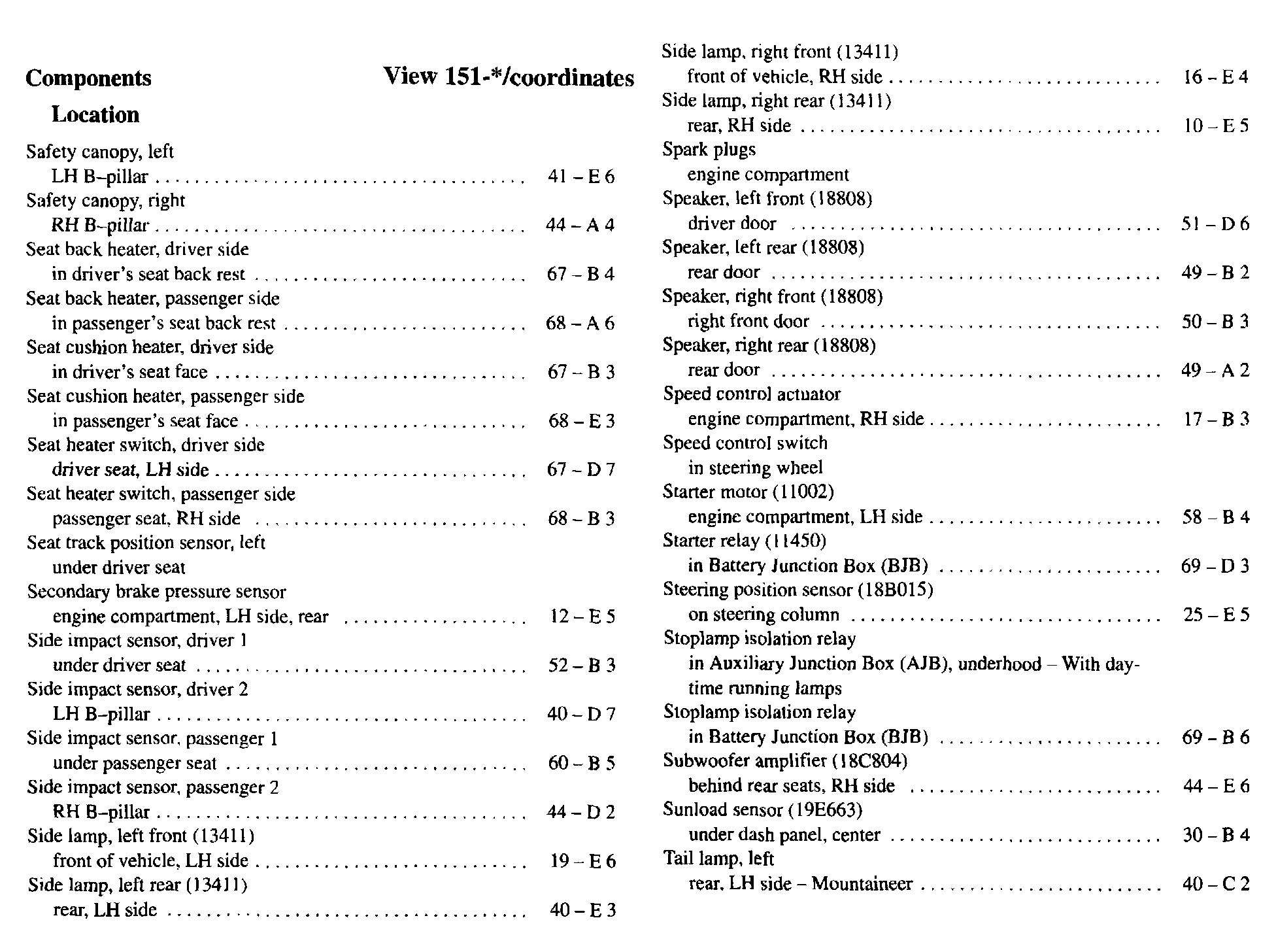 PLEASE NOTE: If a link on the Component Location Index to a view is not provided, that means that the Component and/or View in question does NOT apply to the vehicle model selected.